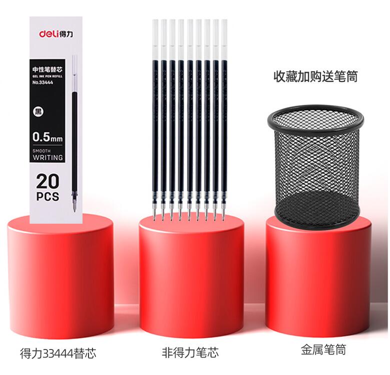得力中性筆黑色0.5mm水筆圓珠筆 學(xué)生用官方水性筆芯紅筆黑筆考試專用筆旗艦店文具辦公用品碳素筆簽字筆