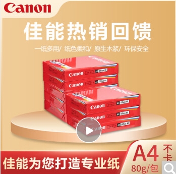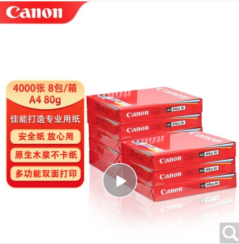 佳能(Canon)80克A4 原裝復印紙 熱銷雙面打印紙 500張/包 8包/箱(整箱4000張)