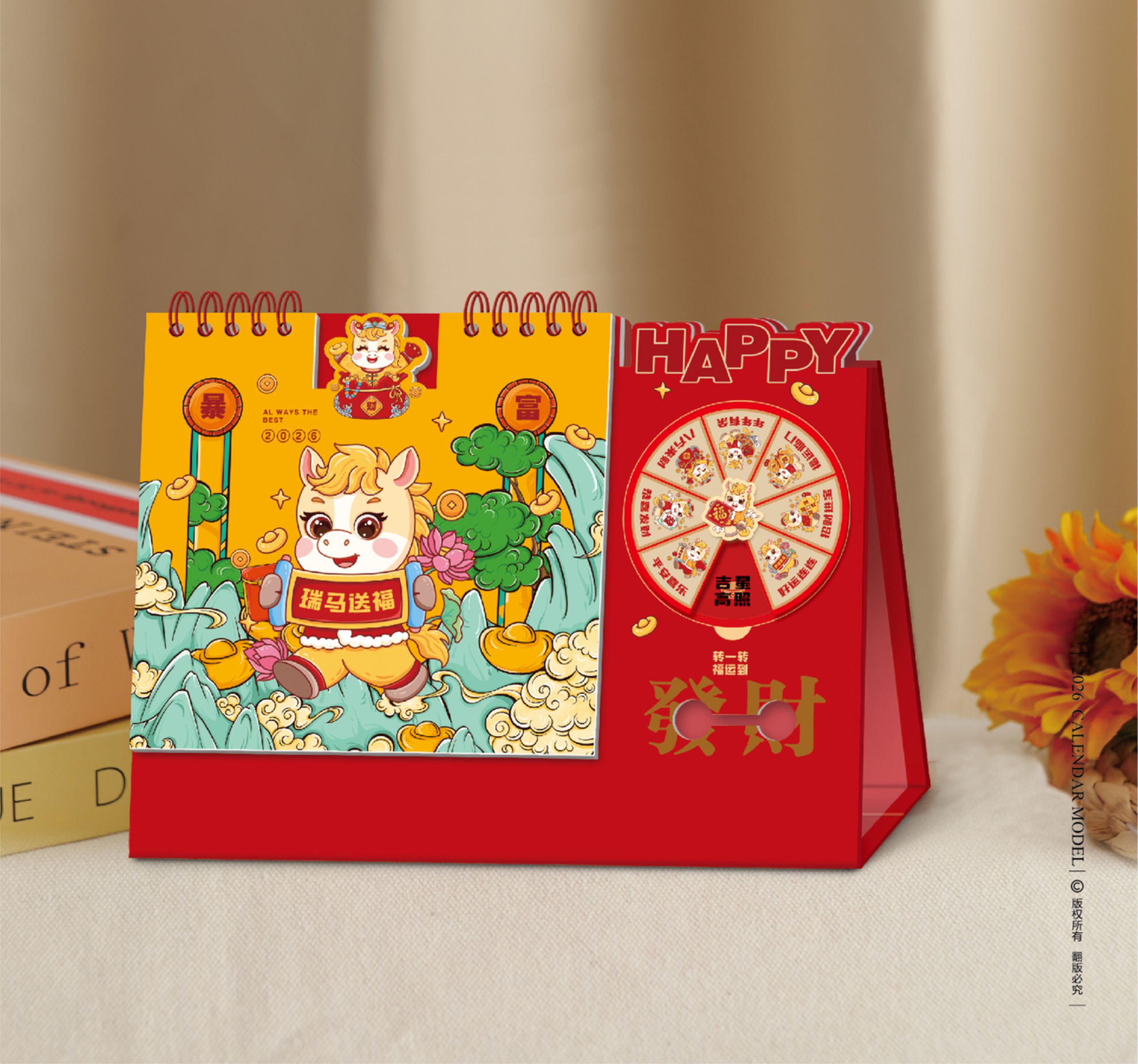 十四張時來運轉(zhuǎn)藝術(shù)臺歷-瑞馬送福