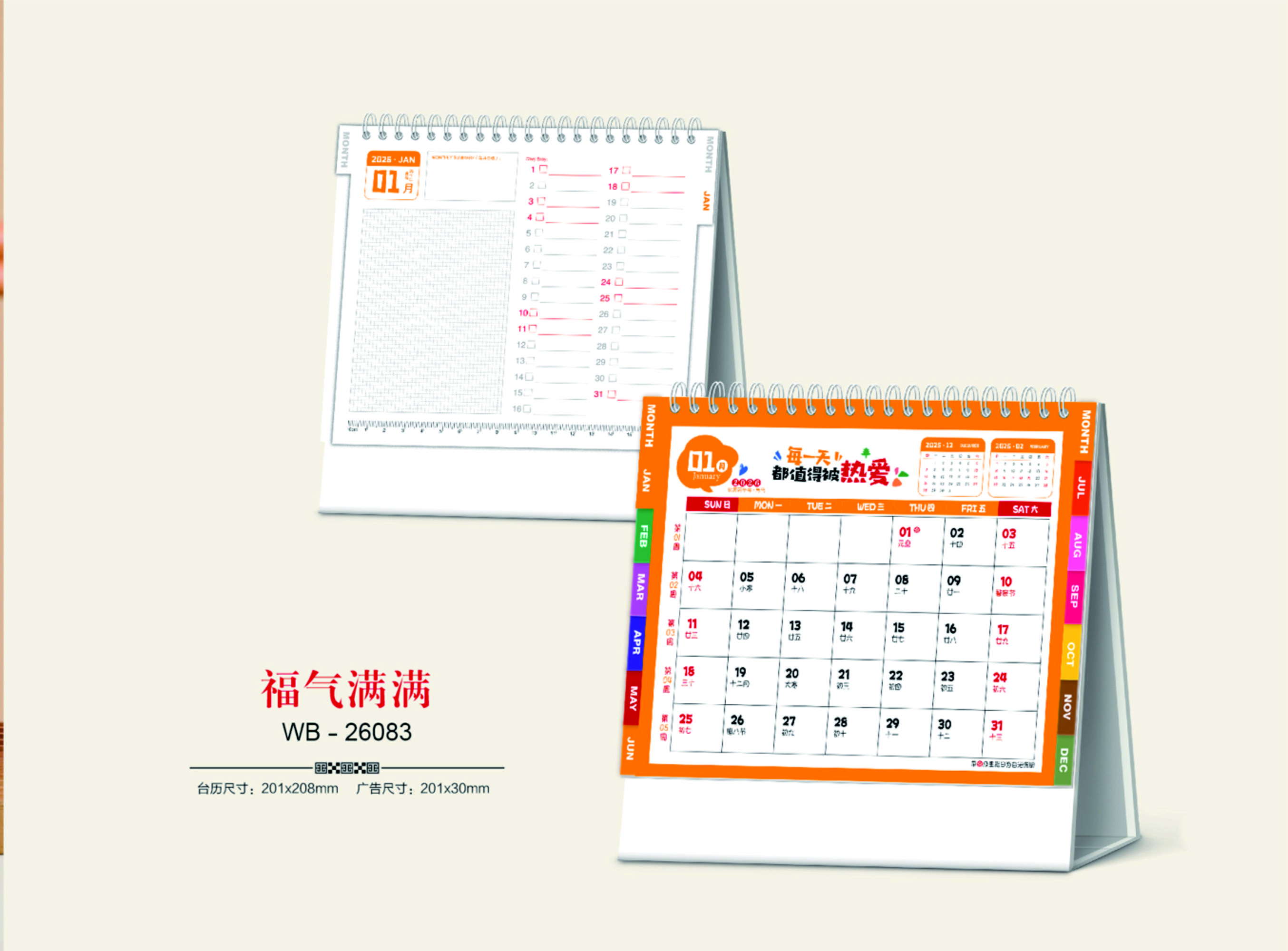 臺歷尺寸:201x208mm