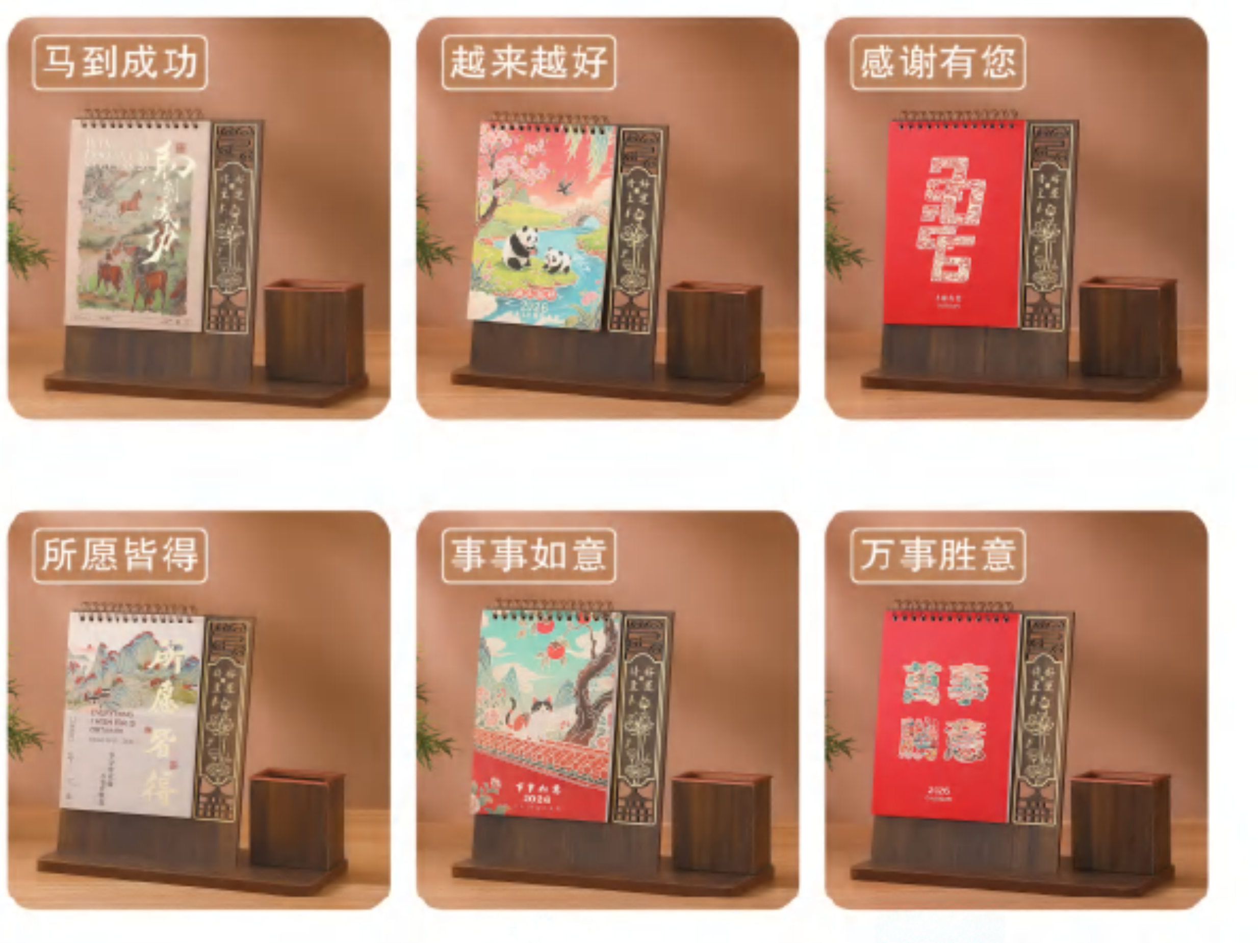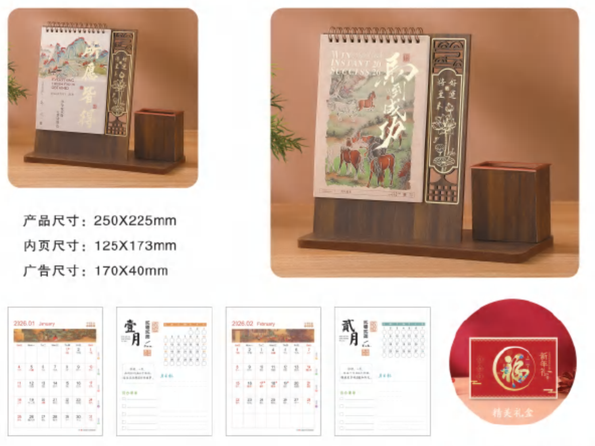 普通筆筒木質(zhì)臺(tái)歷-馬到成功