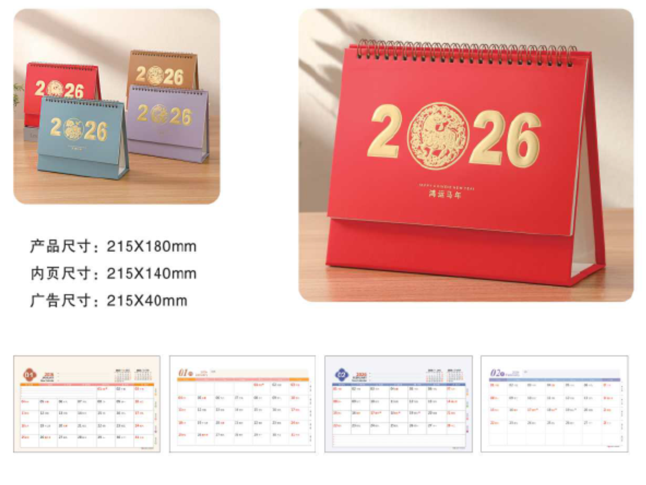 中號紙架簡約臺歷-鴻運馬年