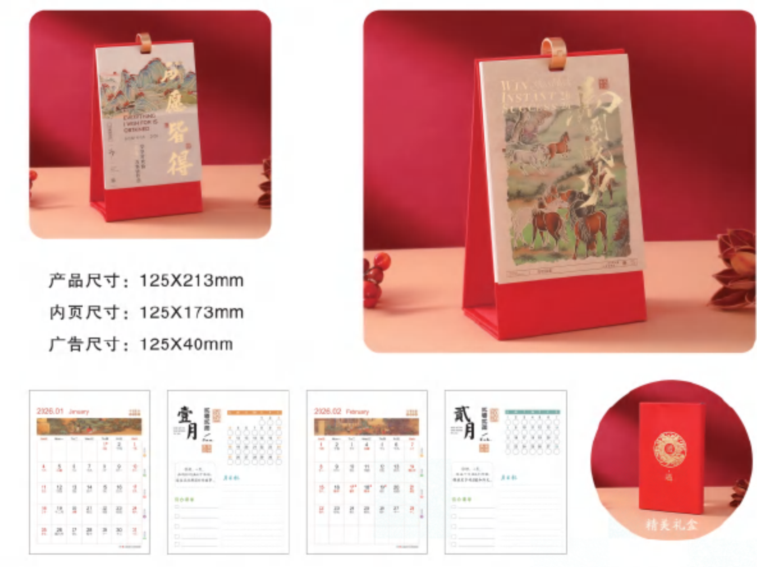 布藝單環(huán)扣禮盒臺歷-馬到成功