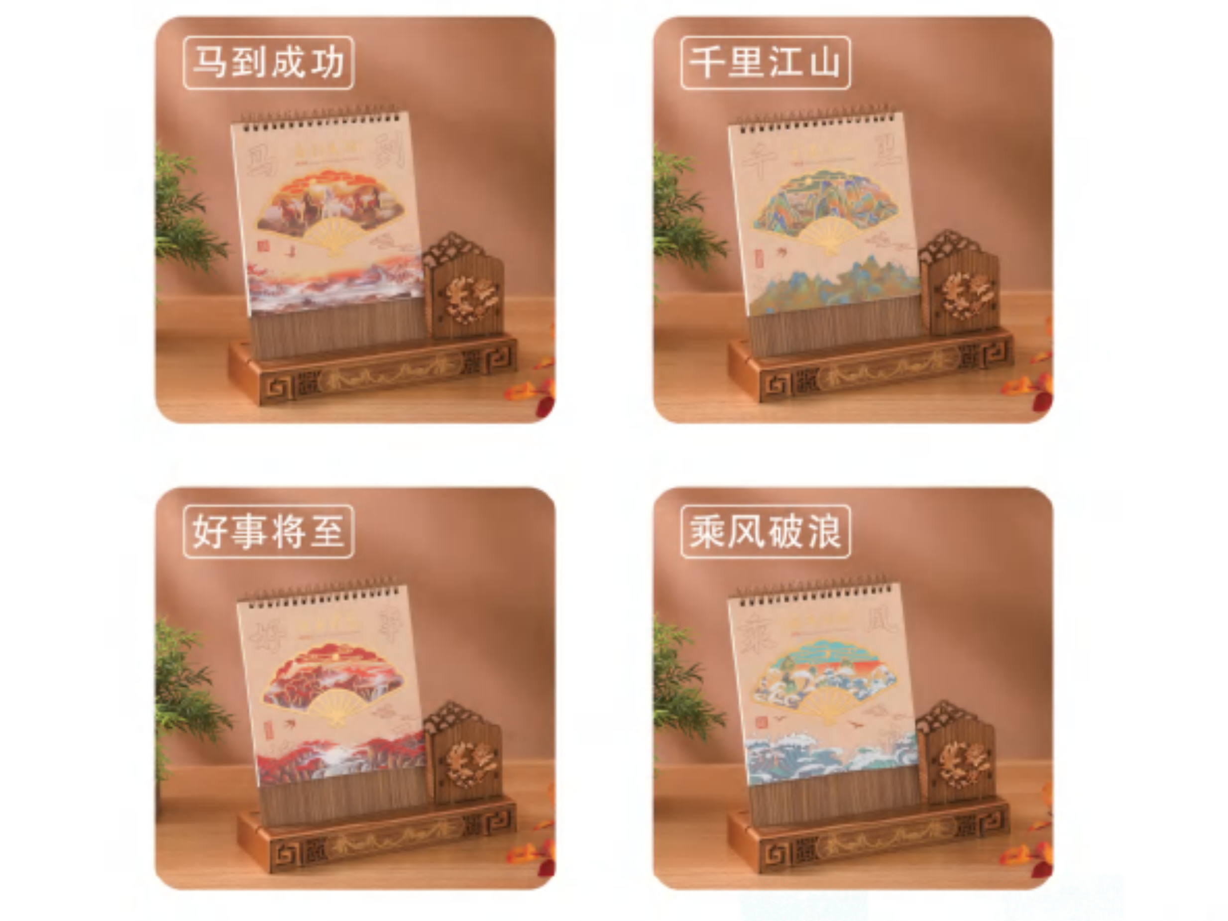 錦鯉雕刻筆筒木質(zhì)臺(tái)歷-馬到成功