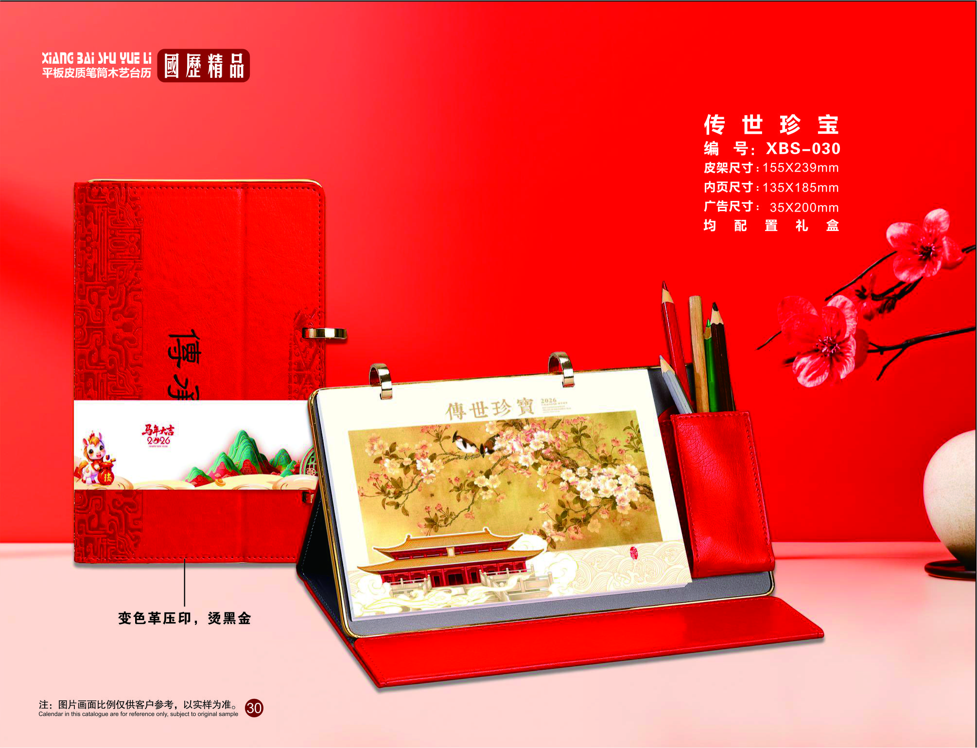 平板皮質(zhì)筆筒木藝臺(tái)歷-傳世珍寶