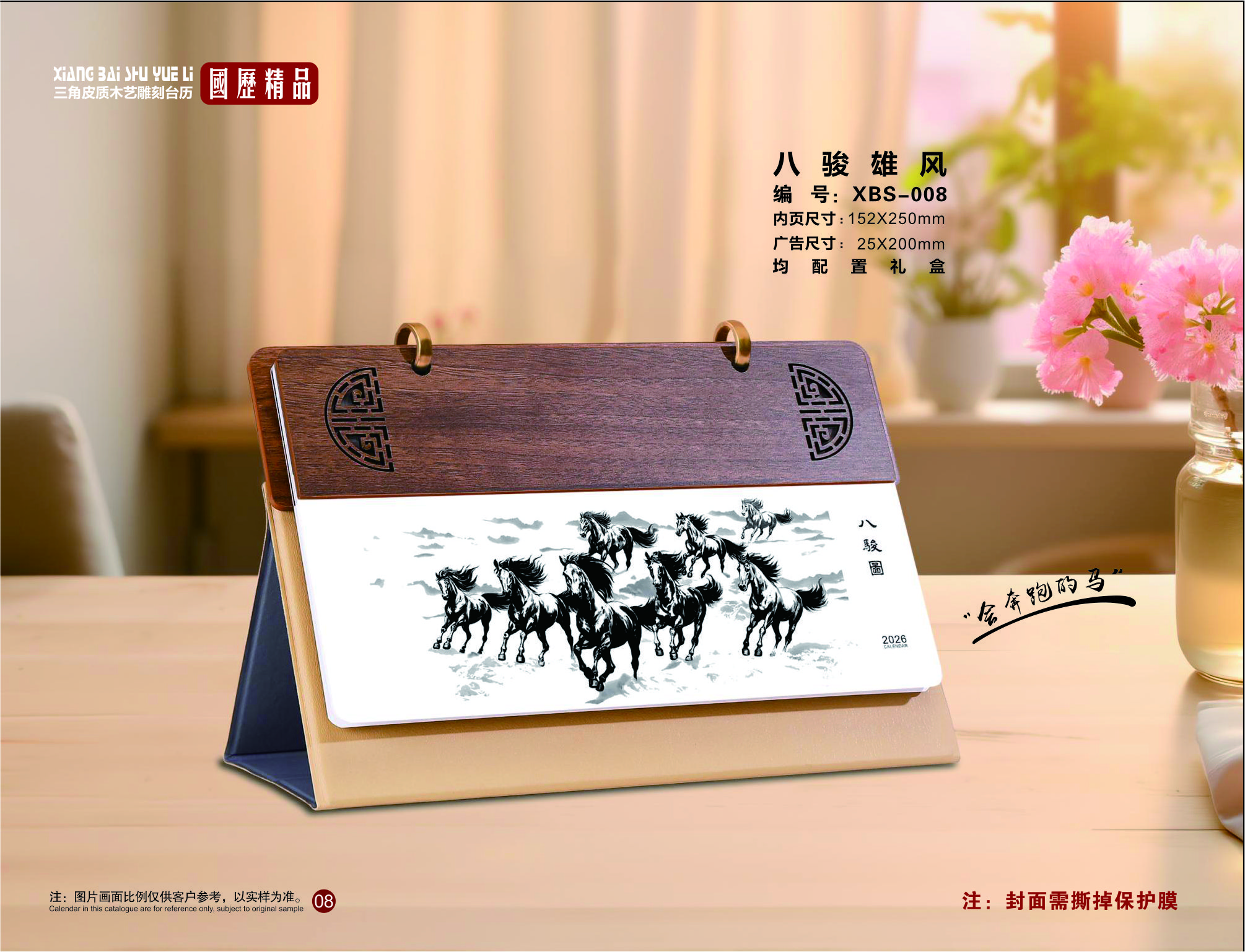 三角皮質(zhì)木藝雕刻臺(tái)歷-八駿雄風(fēng)