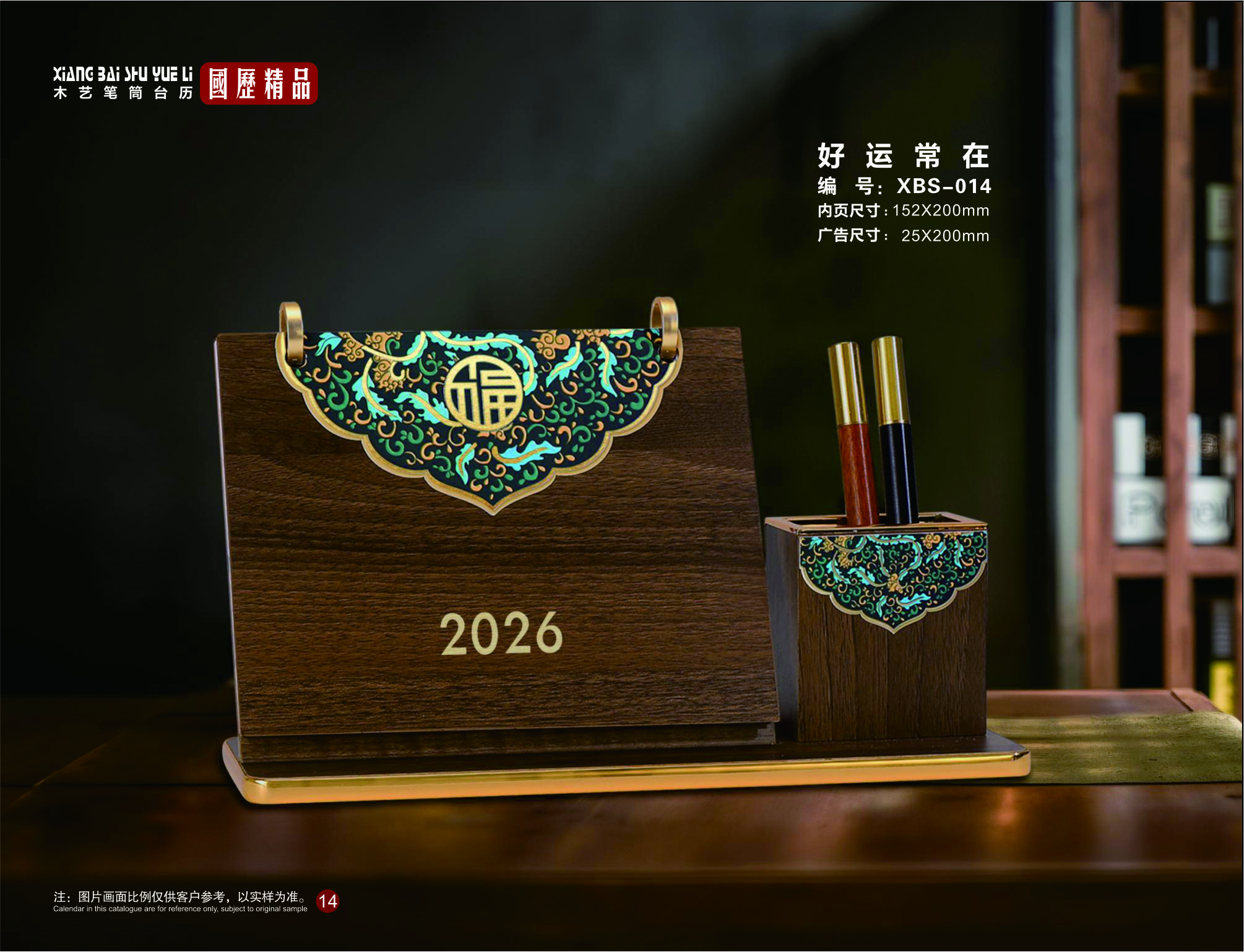 皮質(zhì)筆筒木藝臺(tái)歷-好運(yùn)常在