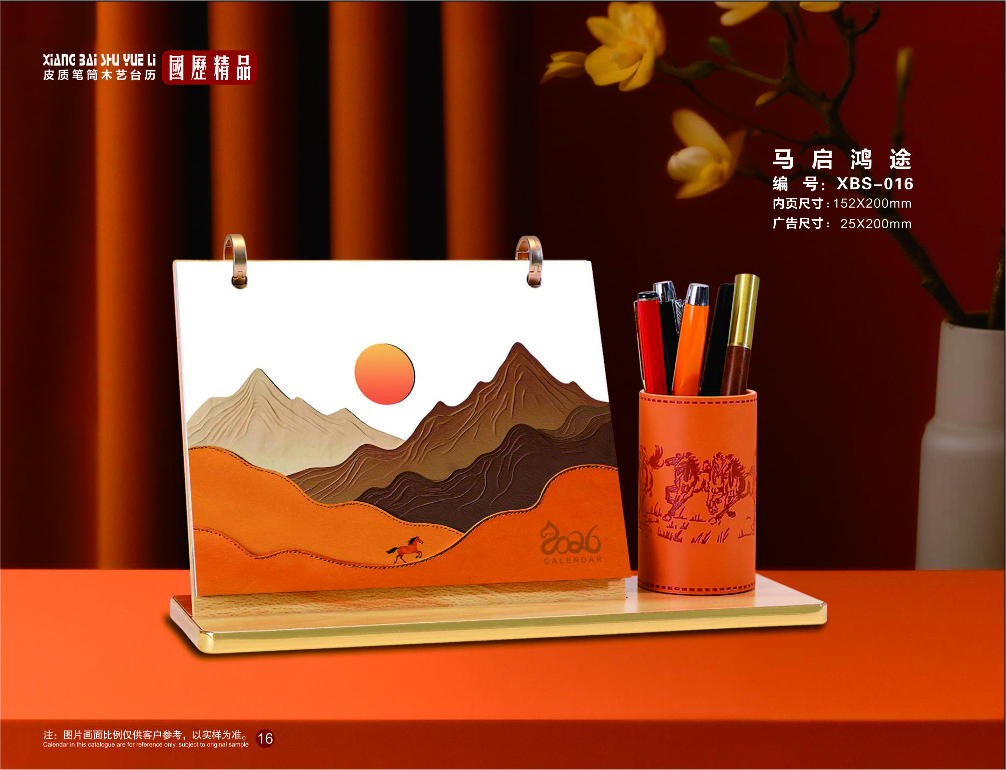 皮質(zhì)筆筒木藝臺(tái)歷-馬啟鴻途