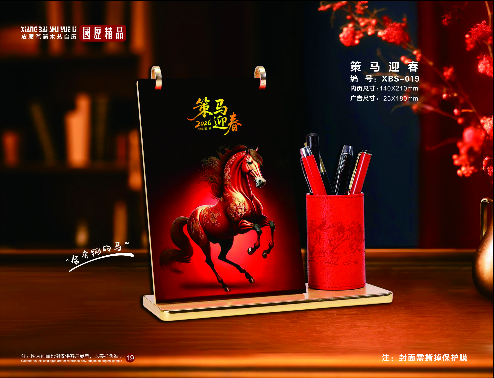 皮質(zhì)筆筒木藝臺(tái)歷-策馬迎春