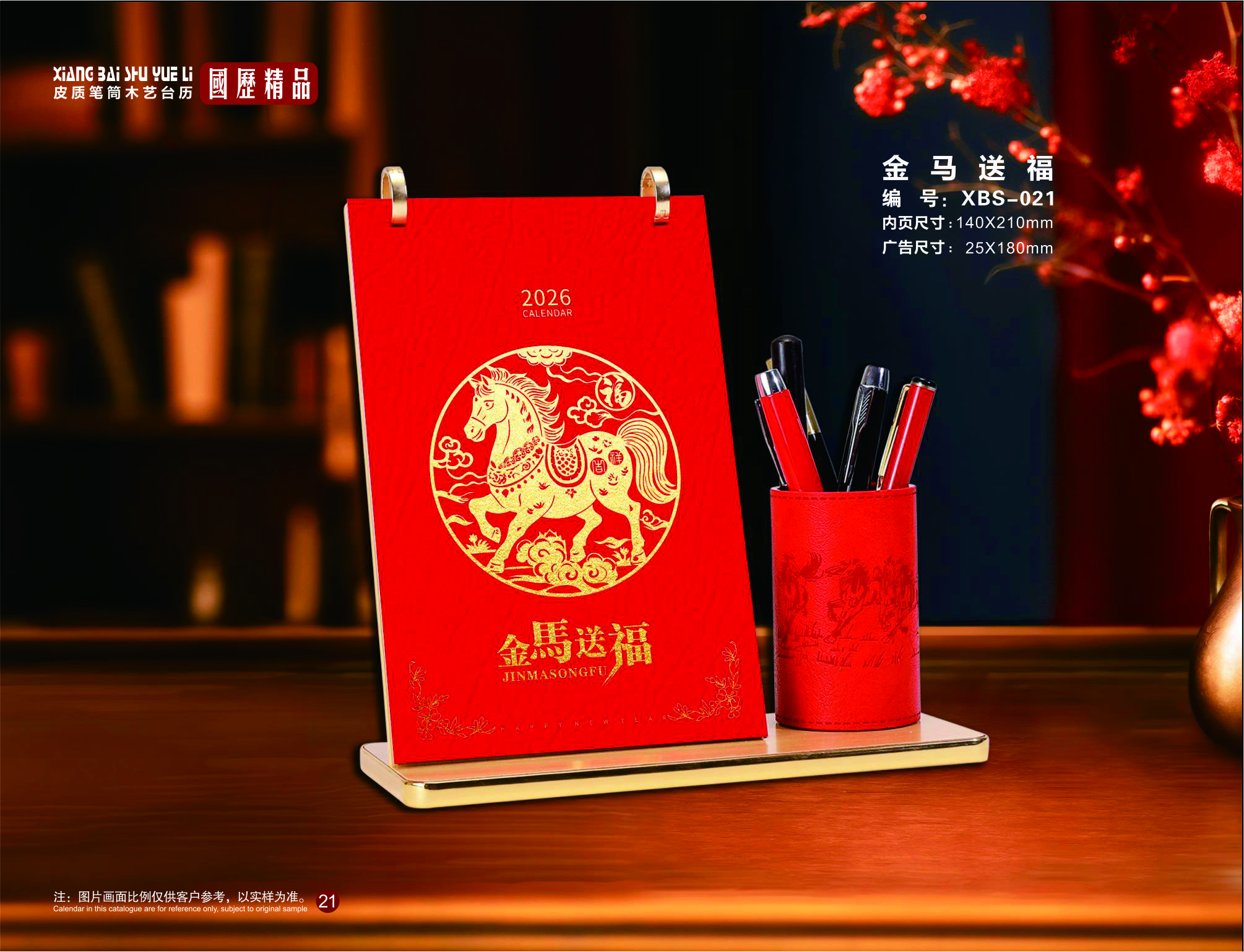 皮質(zhì)筆筒木藝臺歷-金馬送福