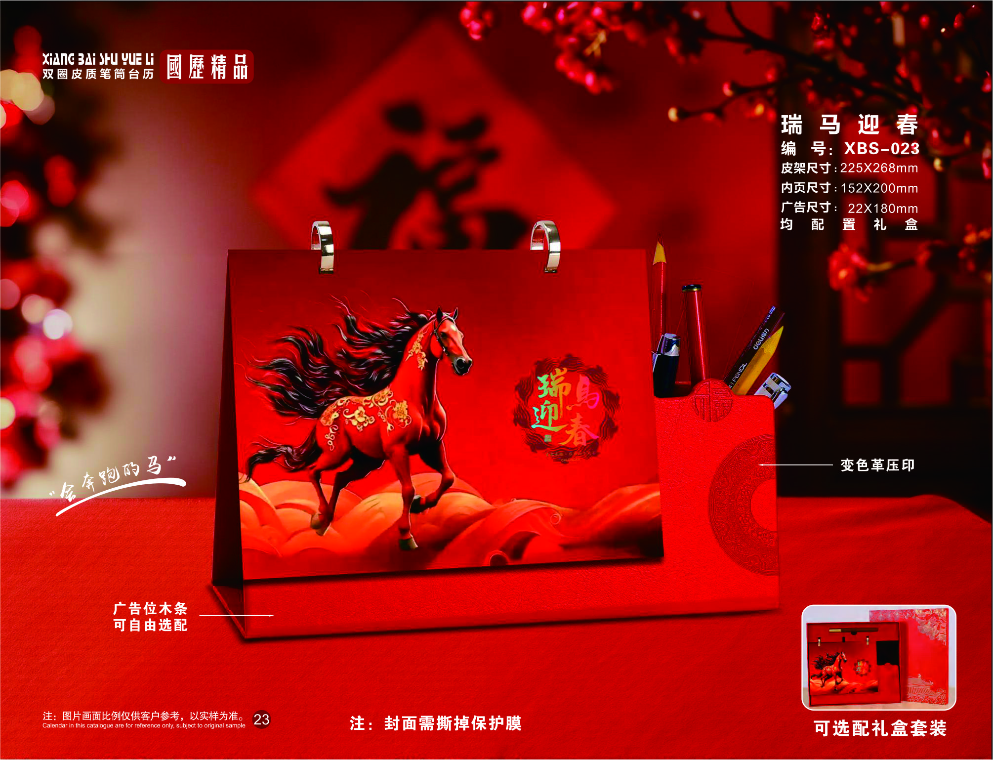 雙圈皮質(zhì)筆筒臺(tái)歷-瑞馬迎春