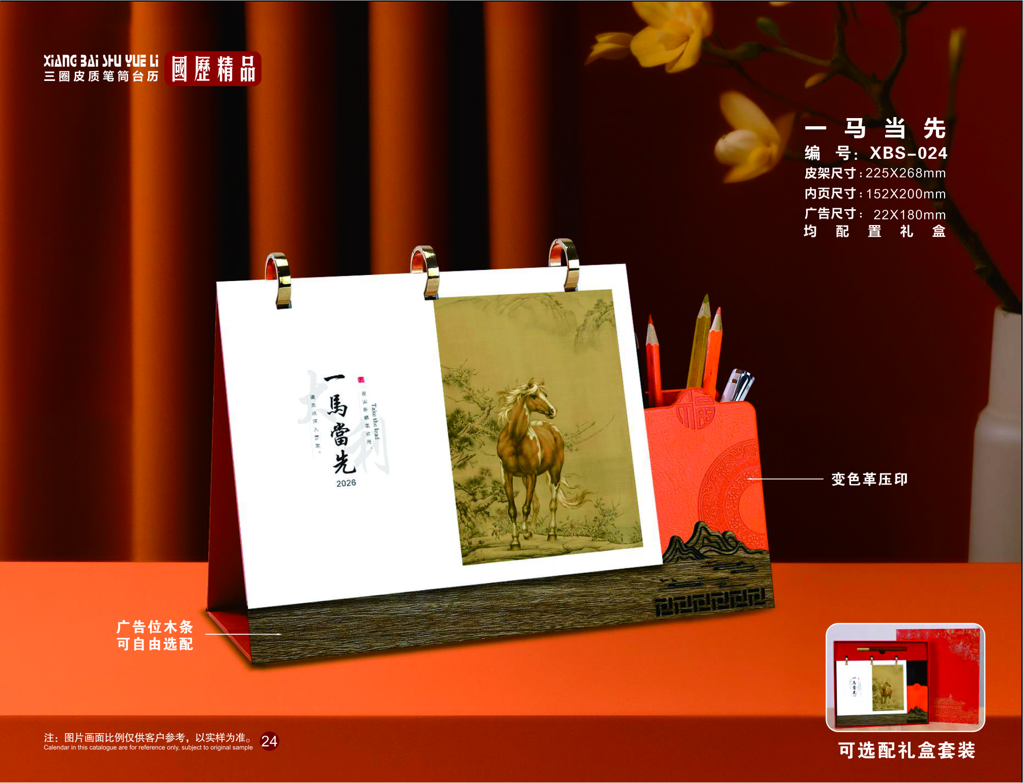 三圈皮質(zhì)筆筒臺歷-一馬當(dāng)先