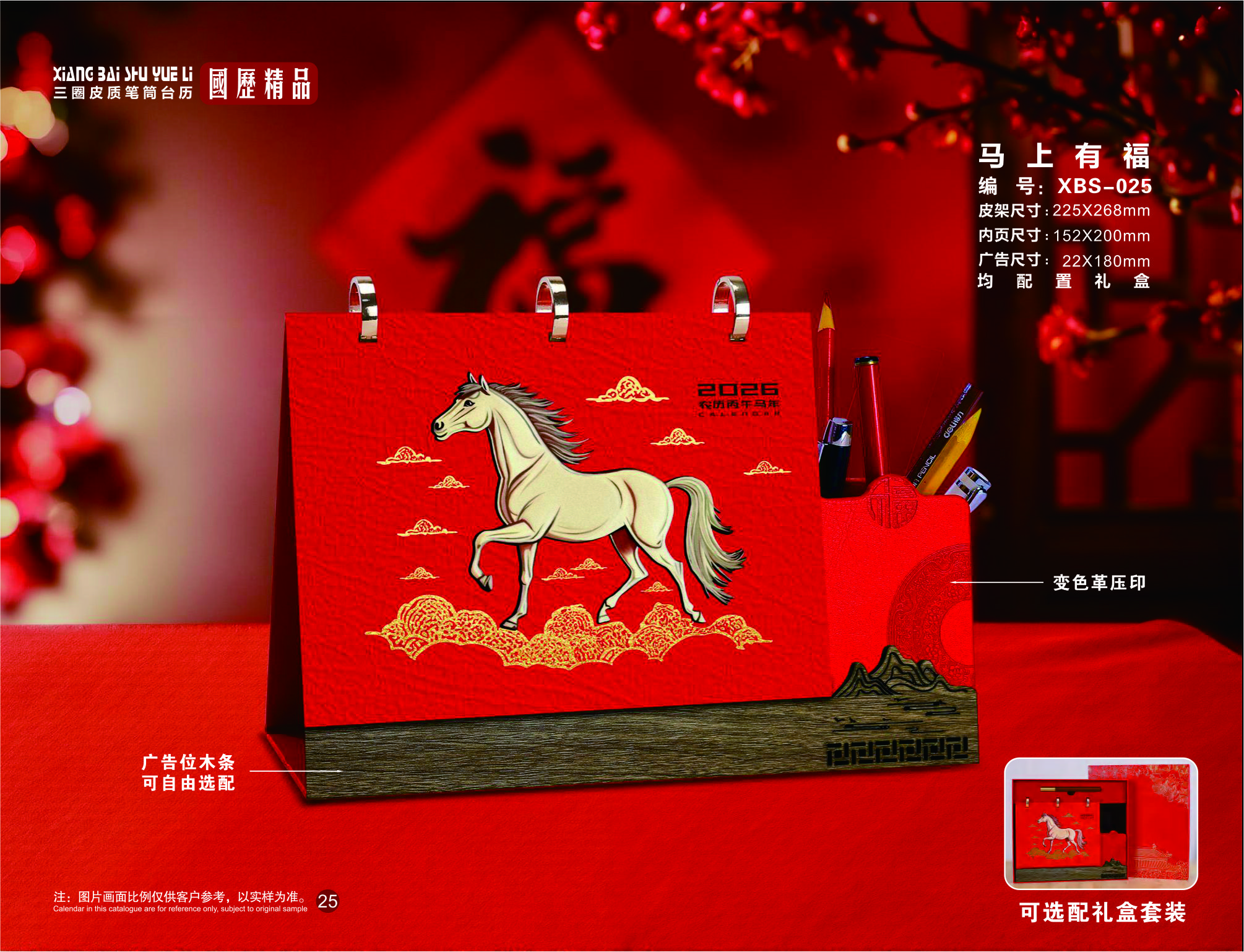 三圈皮質(zhì)筆筒臺歷-馬上有福