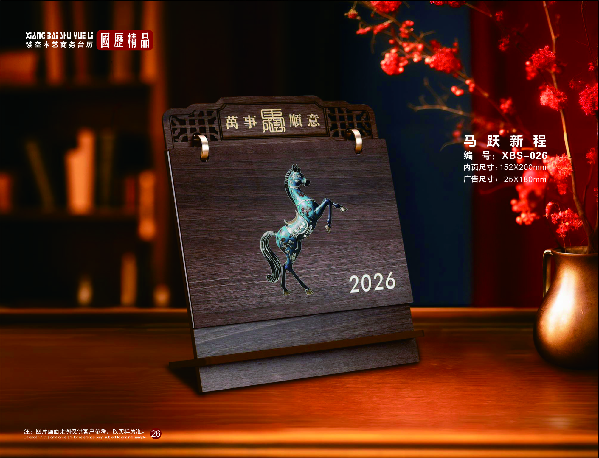 鏤空木藝商務(wù)臺(tái)歷-馬躍新程
