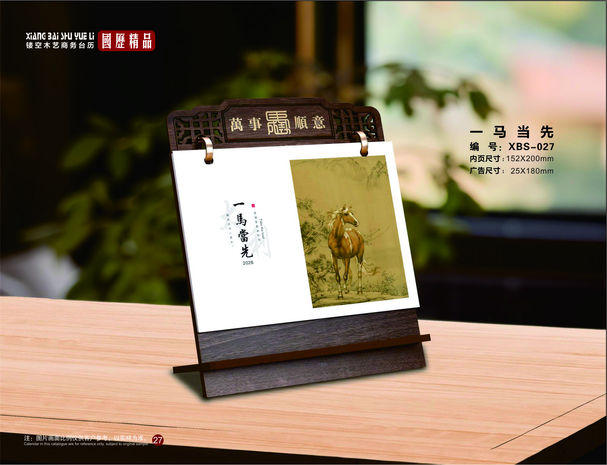鏤空木藝商務(wù)臺(tái)歷-一馬當(dāng)先
