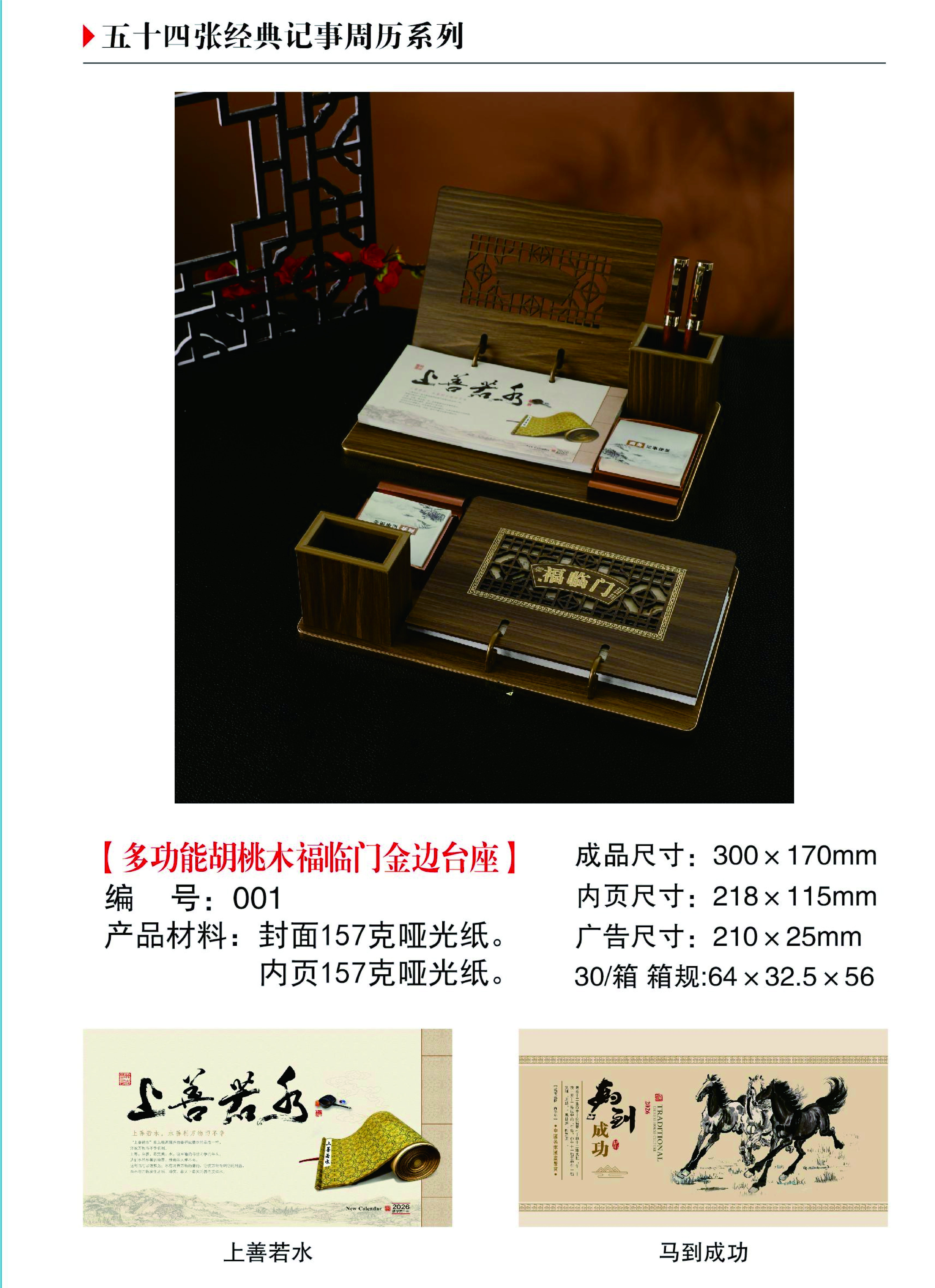 多功能胡桃木福臨門金邊臺(tái)座-上善若水