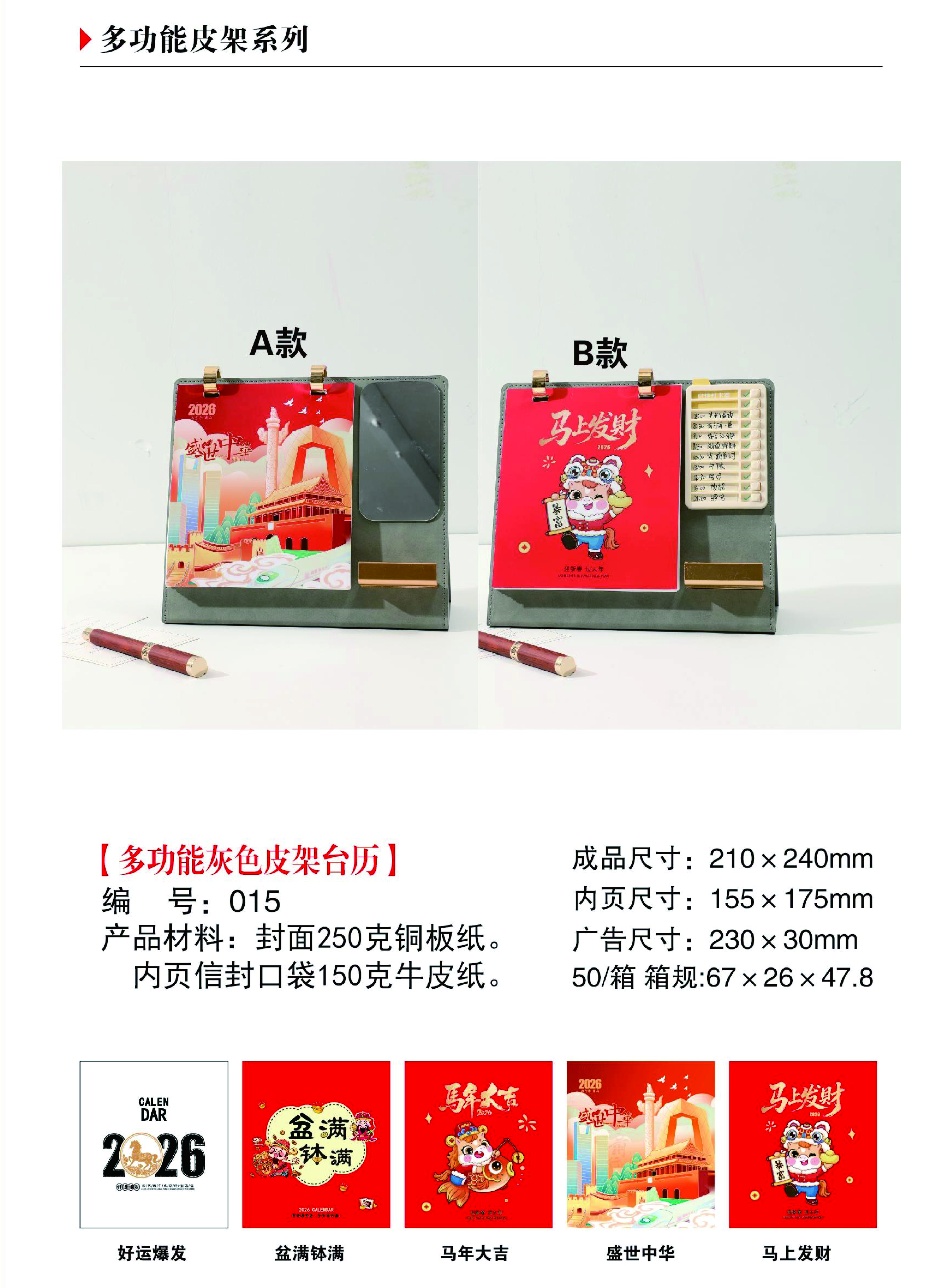 多功能灰色皮架臺(tái)歷-馬上發(fā)財(cái)