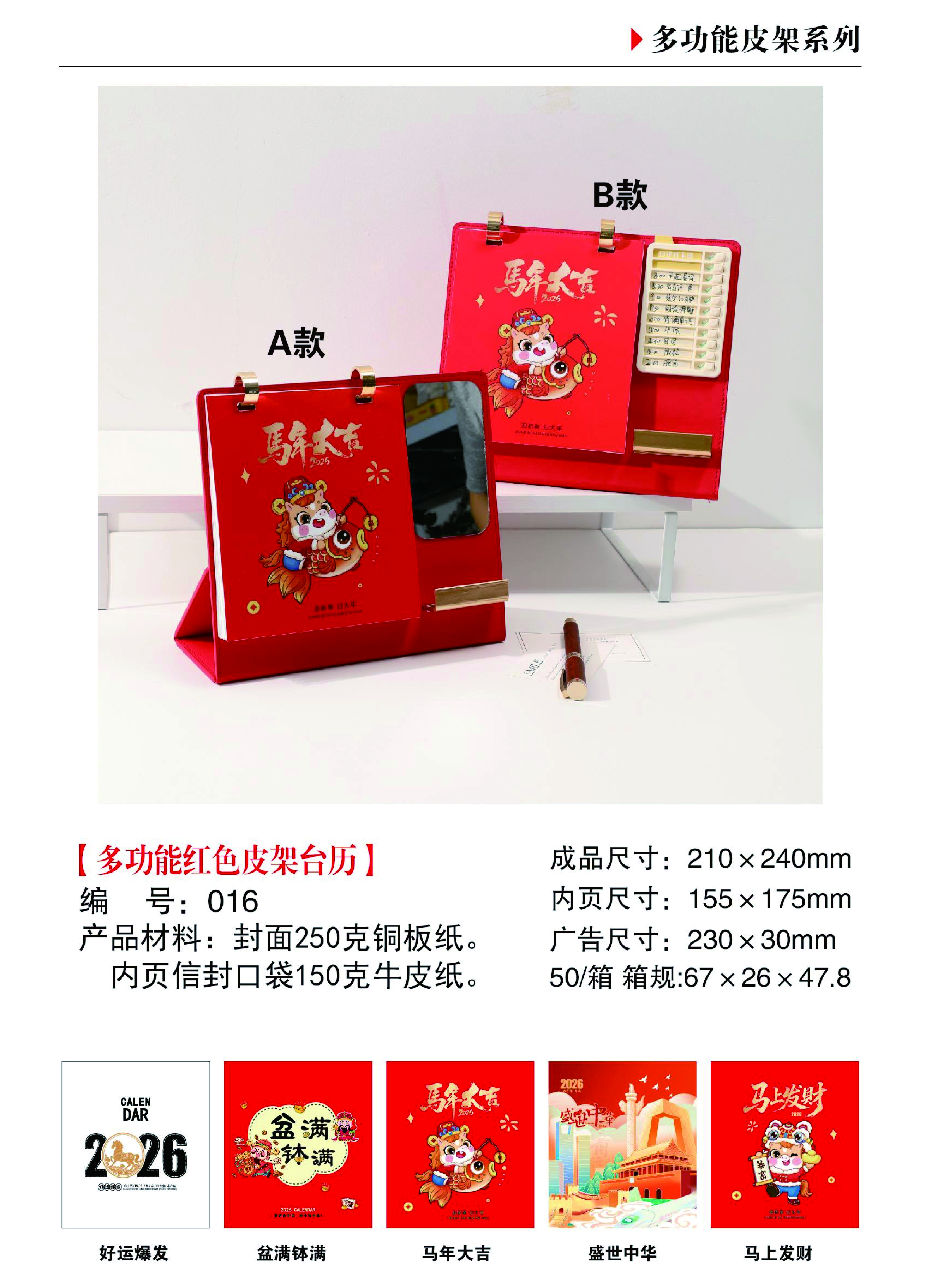 多功能紅色皮架臺(tái)歷-馬年大吉
