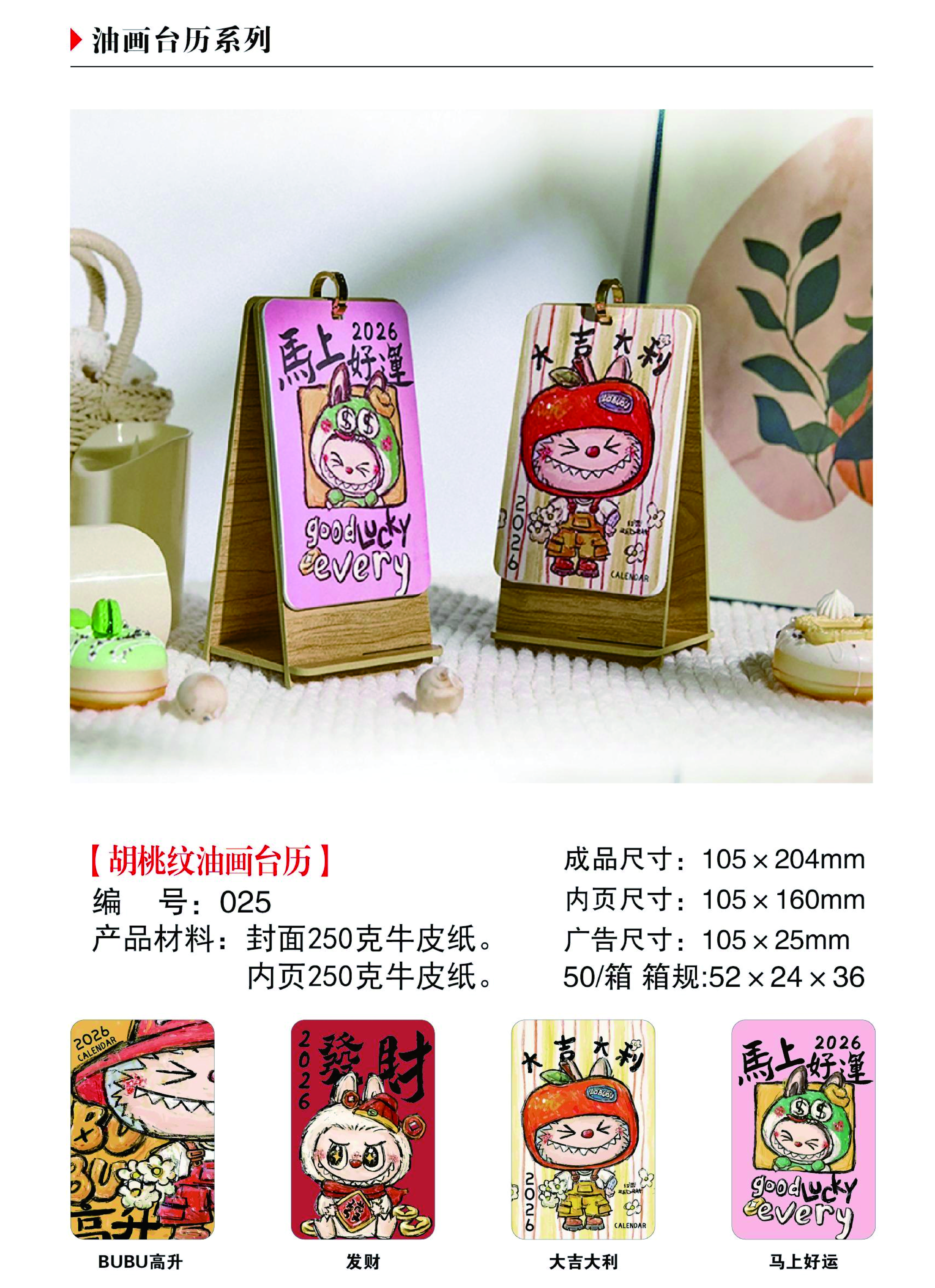 胡桃紋油畫臺歷-大吉大利