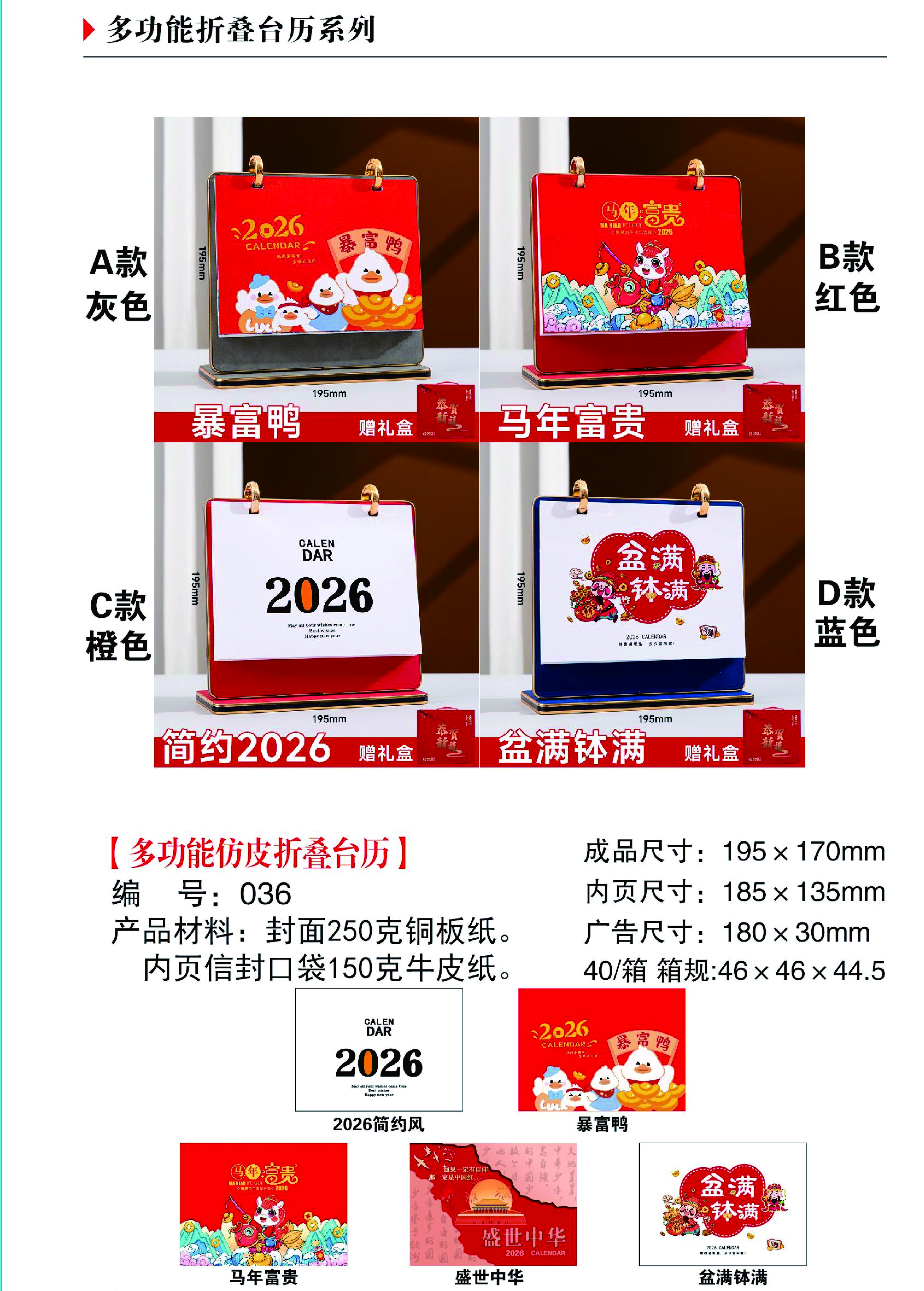 多功能仿皮折疊臺(tái)歷-D款-盆滿(mǎn)缽滿(mǎn)