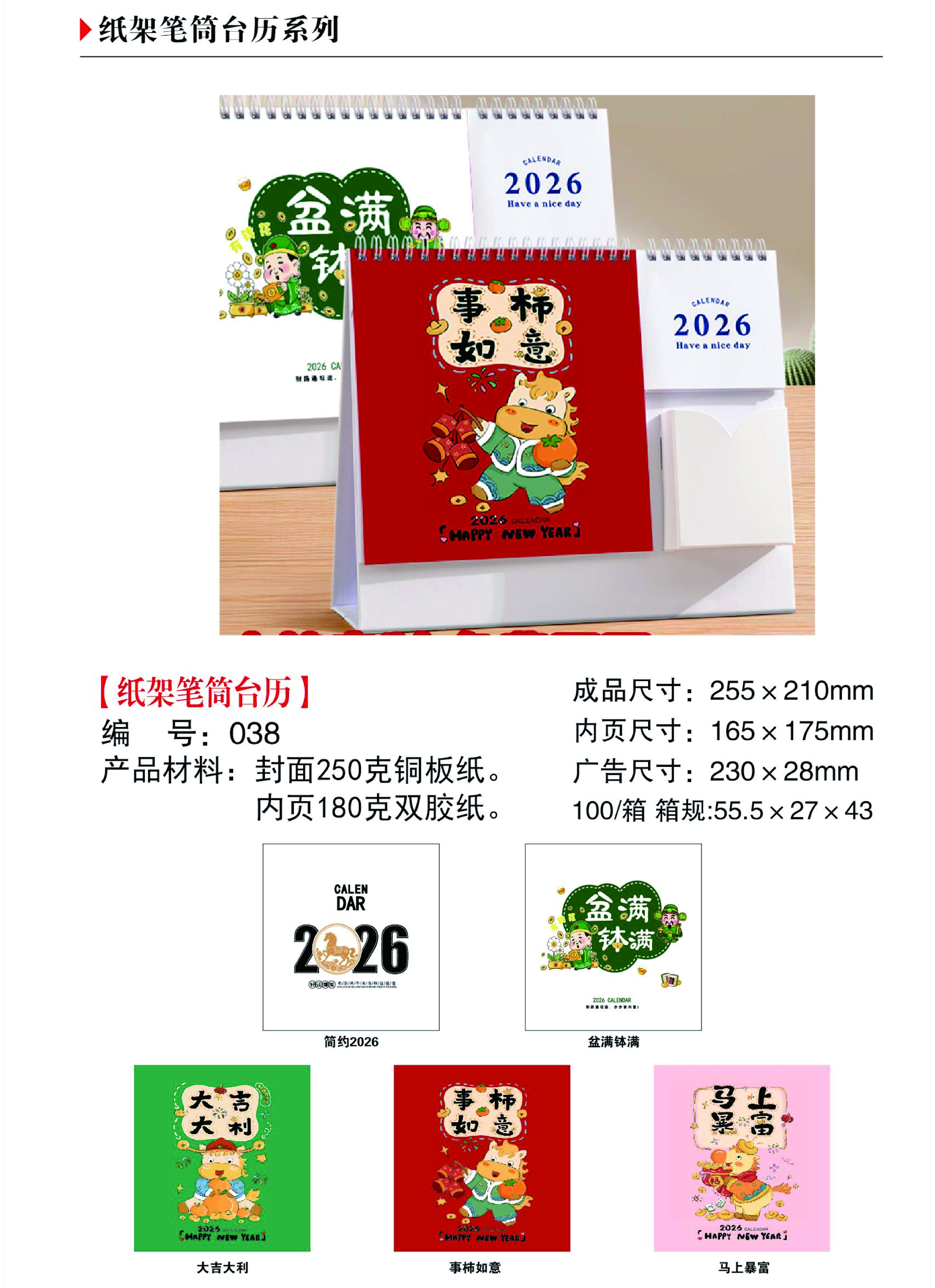 紙架筆筒臺(tái)歷-事柿如意