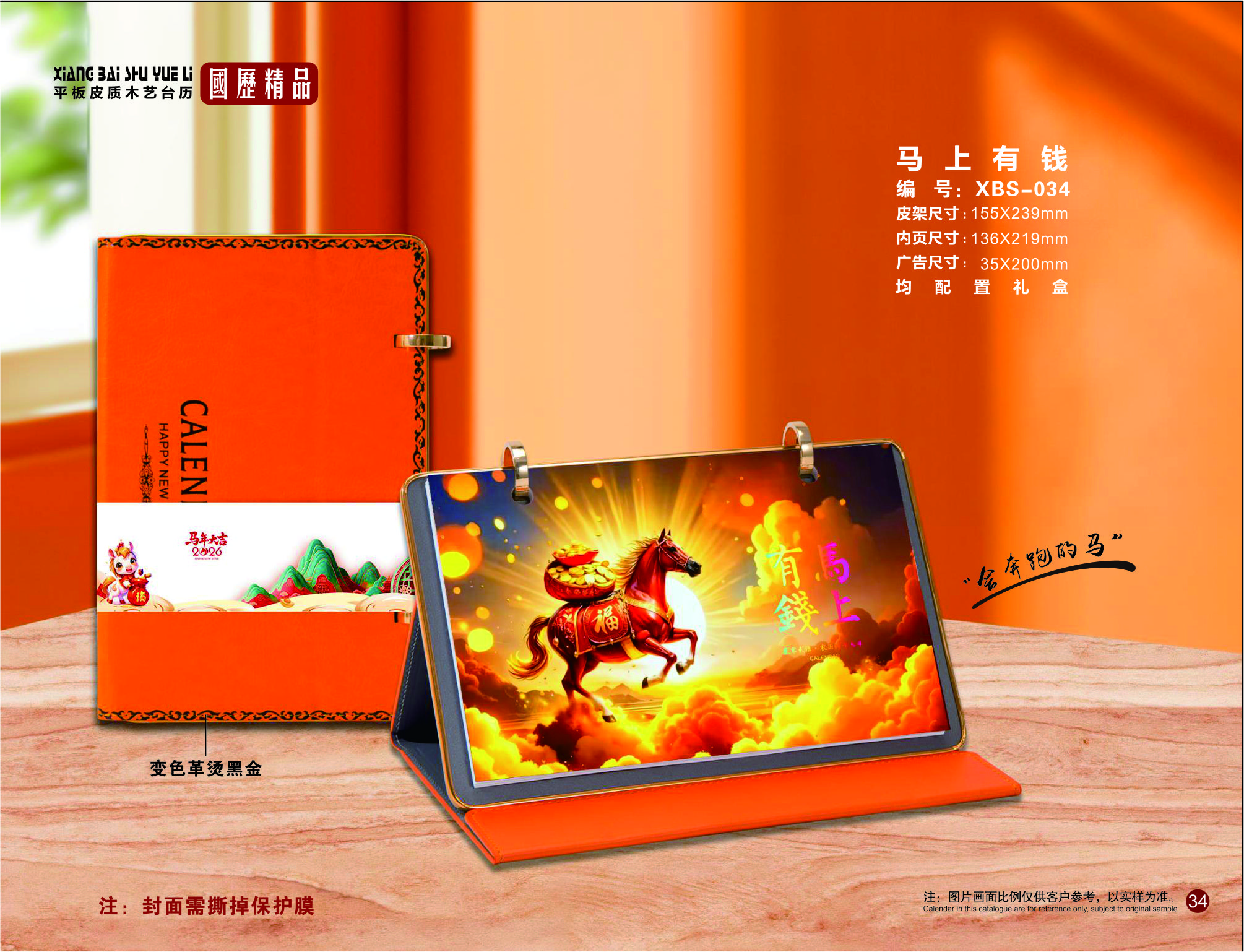 平板皮質(zhì)木藝臺歷-馬上有錢