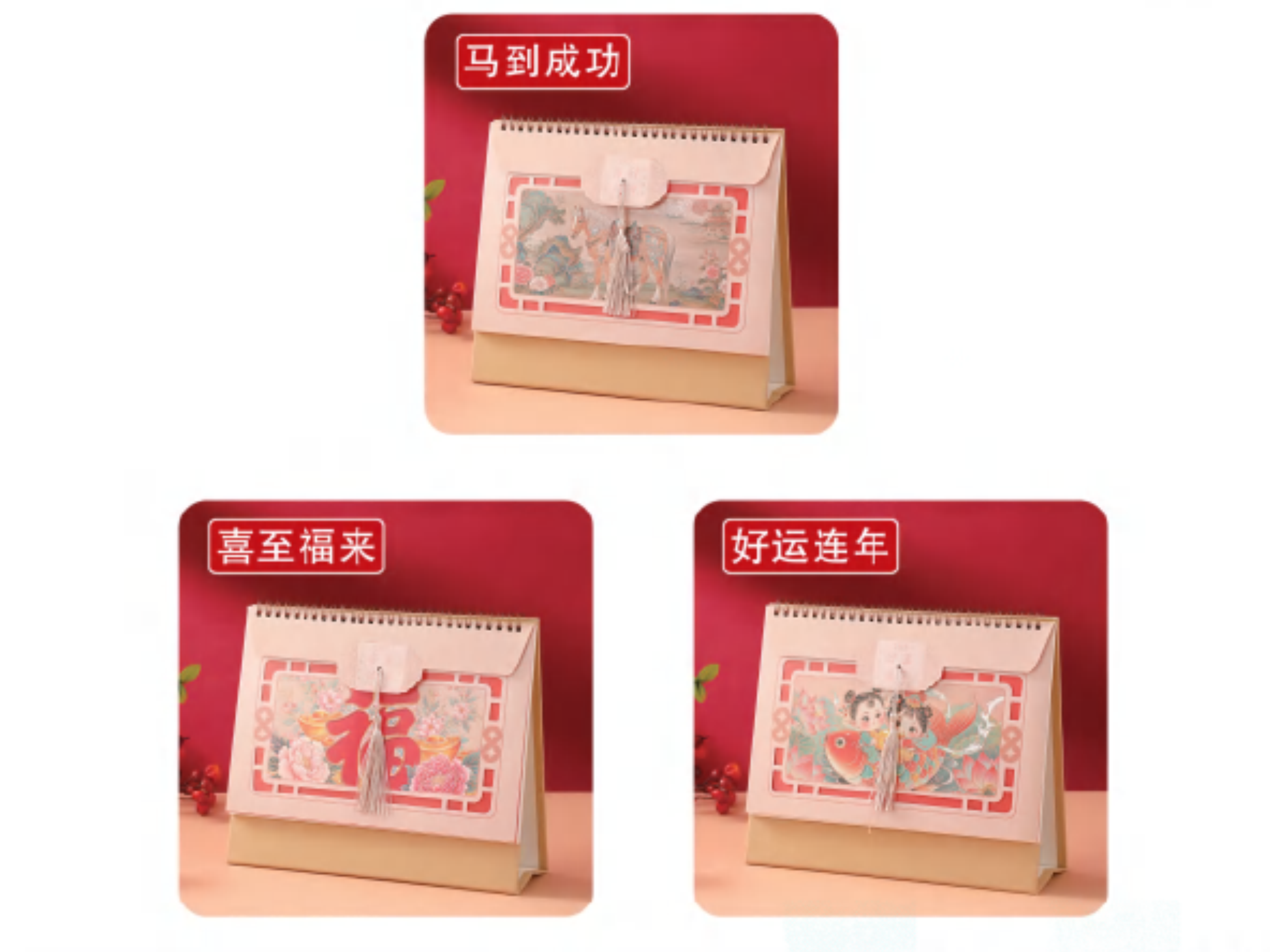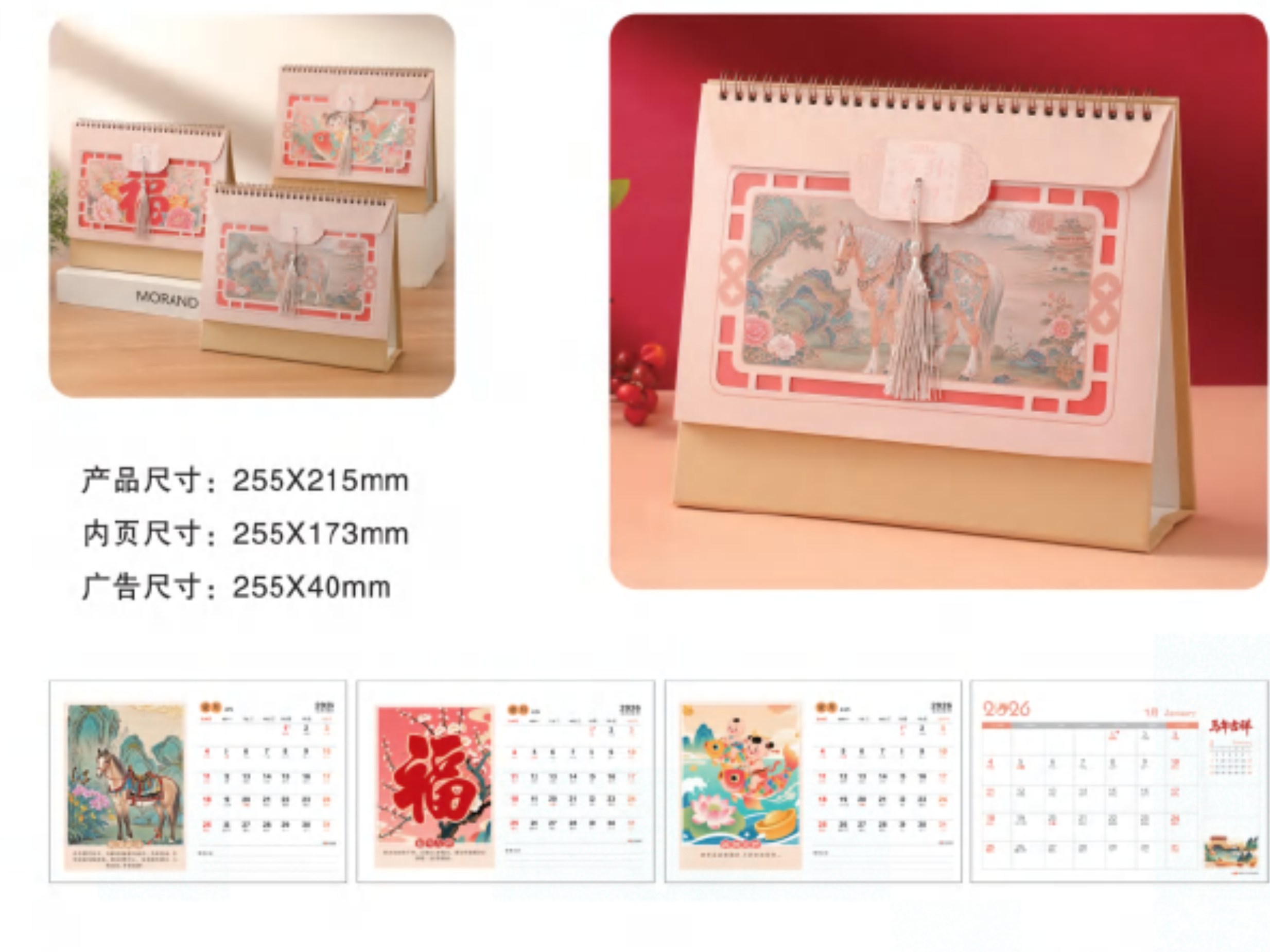 大號(hào)珠光流蘇藝術(shù)臺(tái)歷-馬到成功