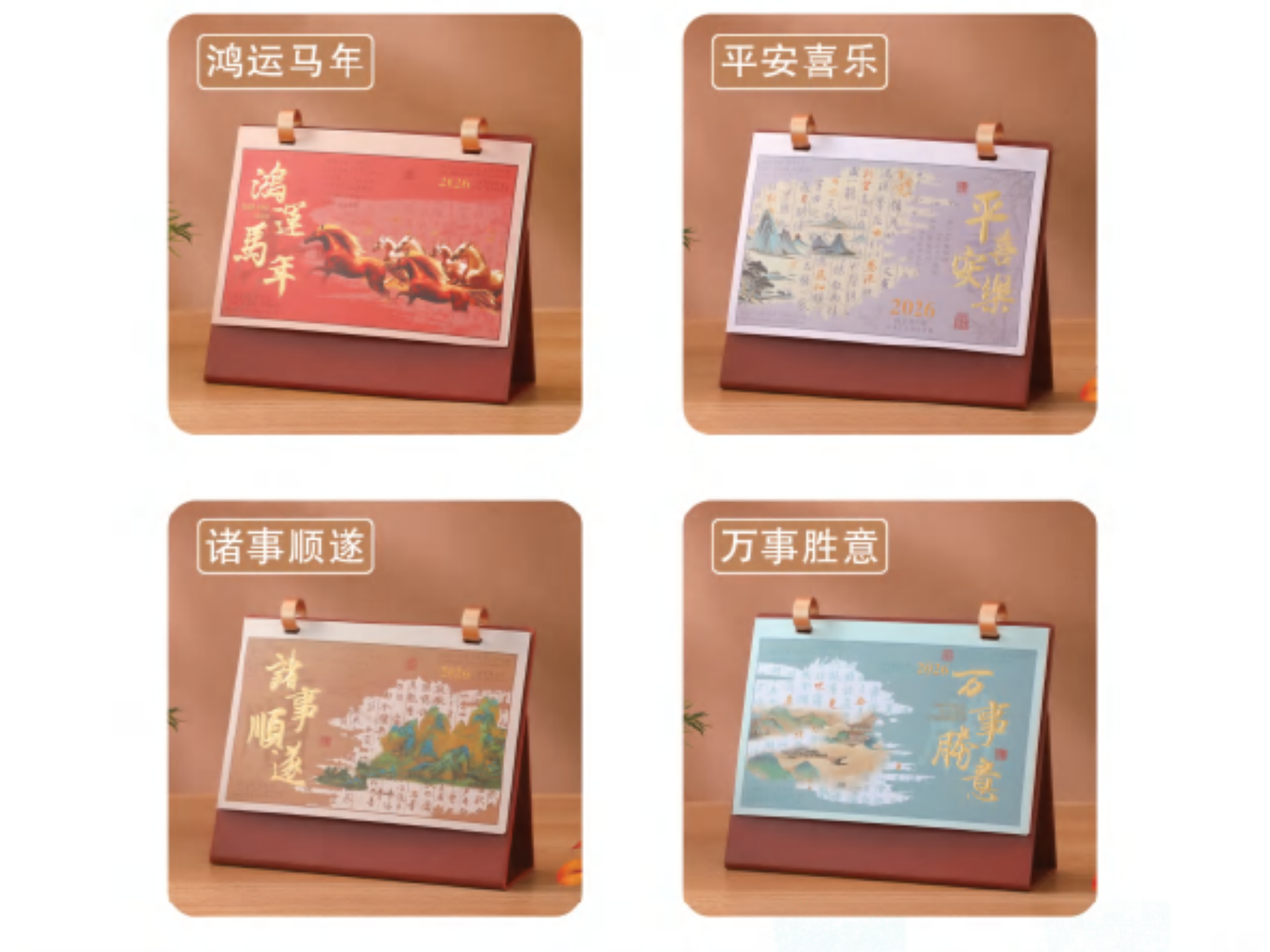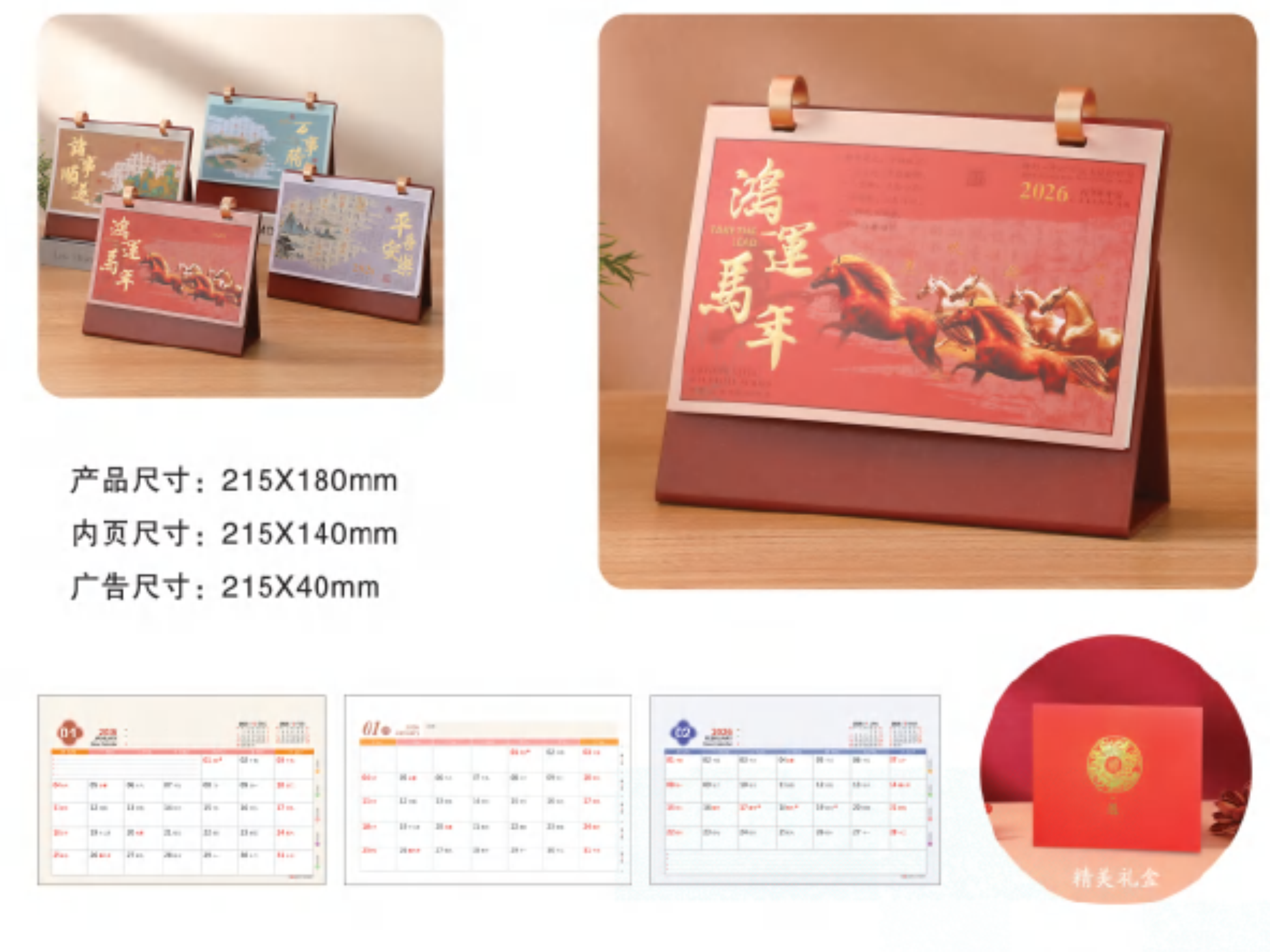 雙圈國風皮質(zhì)禮盒臺歷-鴻運馬年