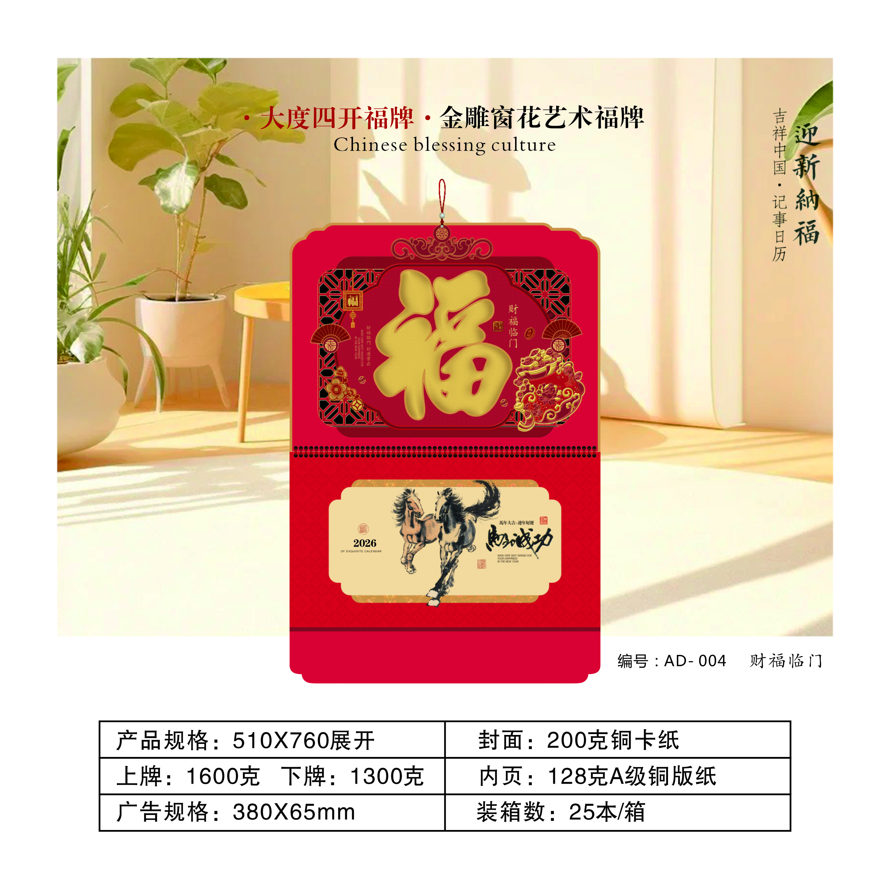大度四開(kāi)金雕窗花藝術(shù)福牌-財(cái)福臨門(mén)