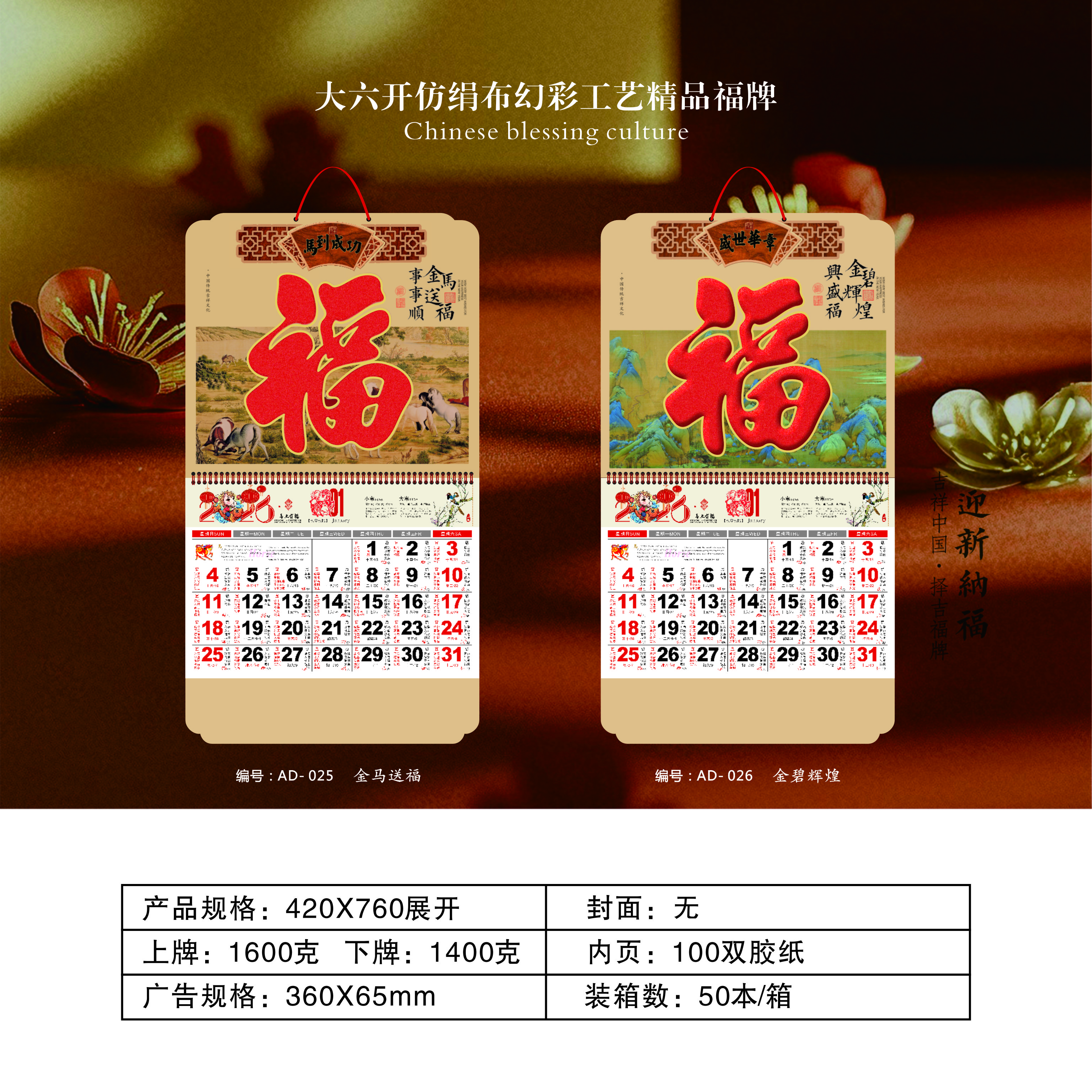 大六開仿絹布幻彩工藝精品福牌-金馬送福