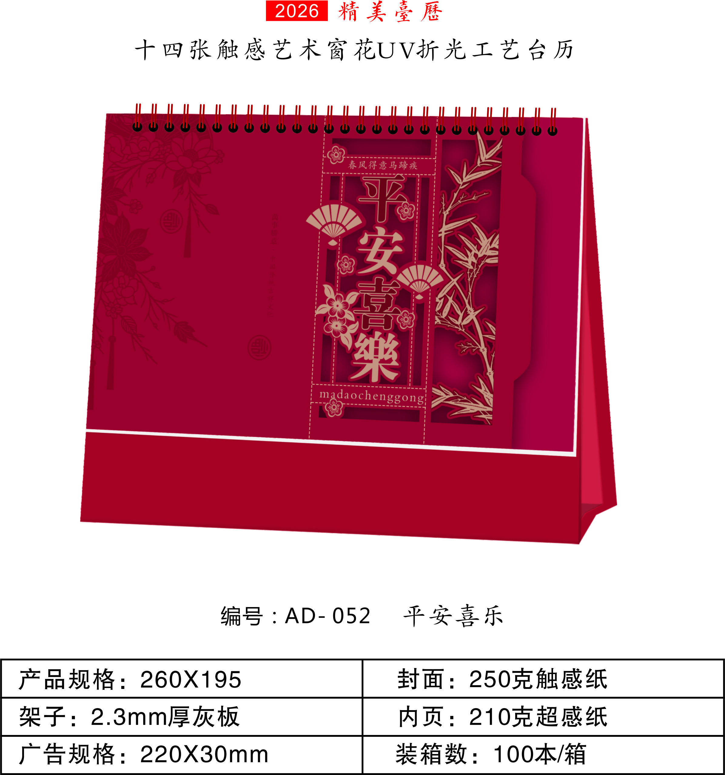 十四張觸感藝術(shù)窗花UV折光工藝臺歷-平安喜樂