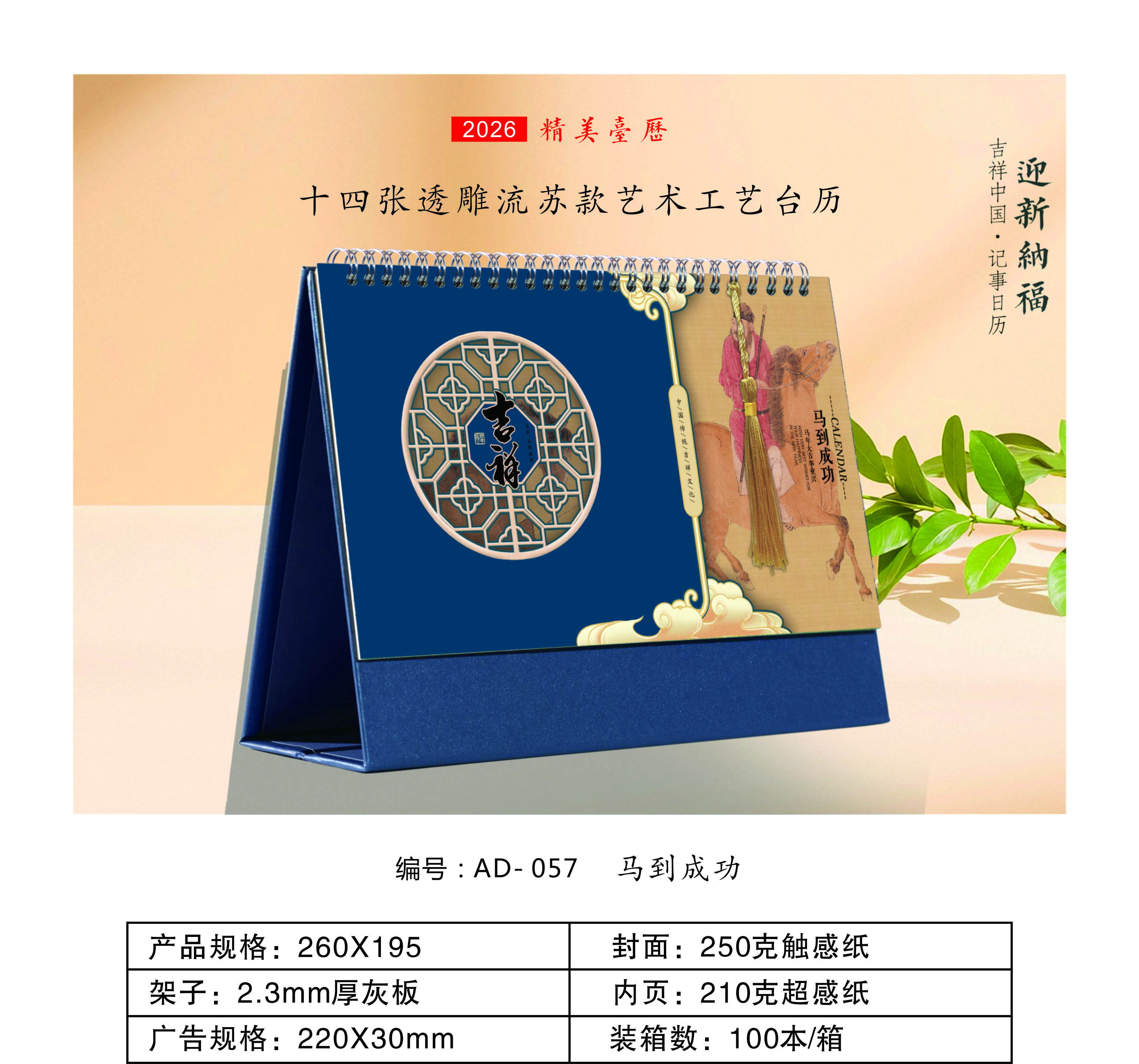 十四張透雕流蘇款藝術(shù)工藝臺歷-馬到成功