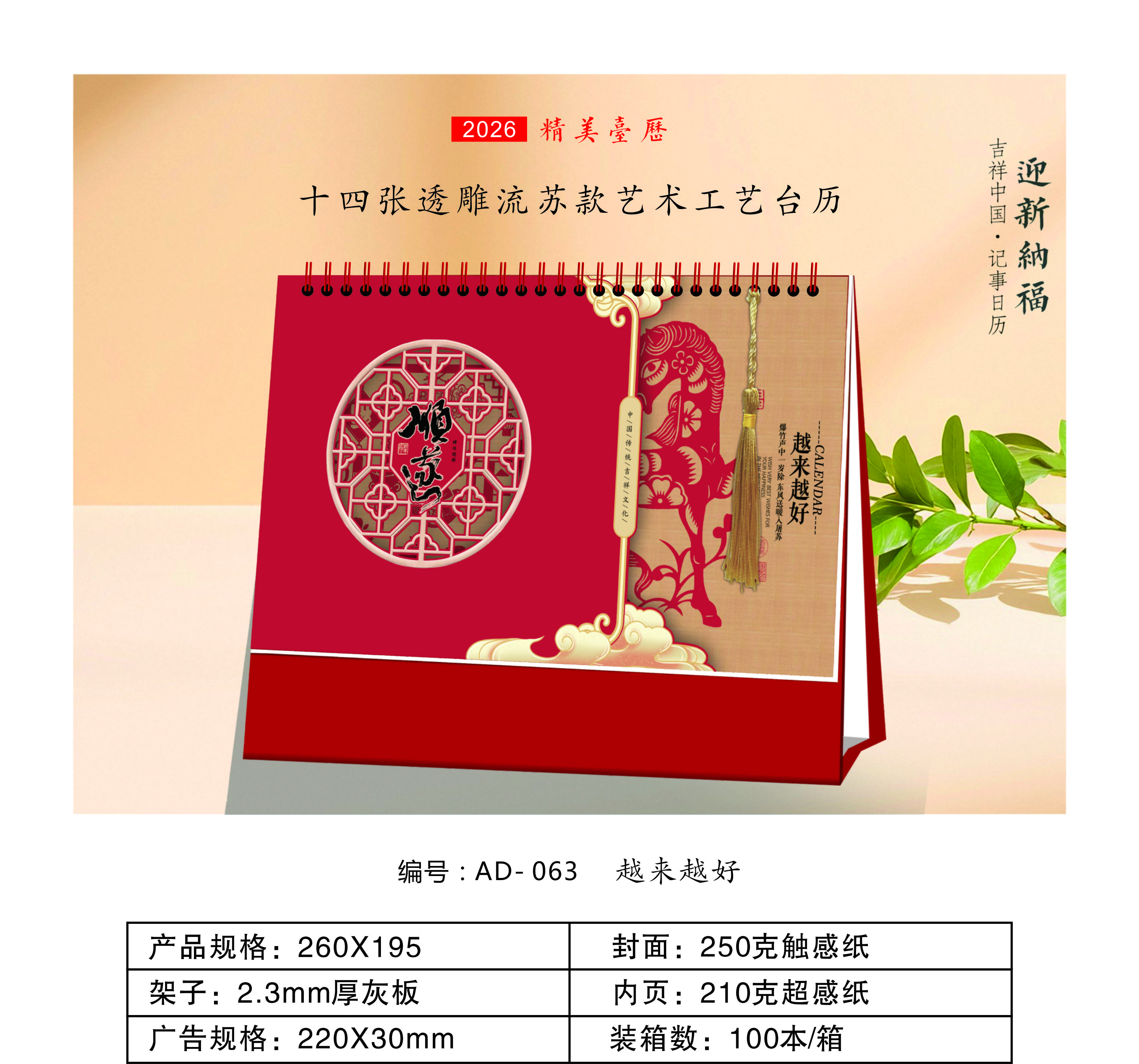 十四張透雕流蘇款藝術(shù)工藝臺歷-越來越好