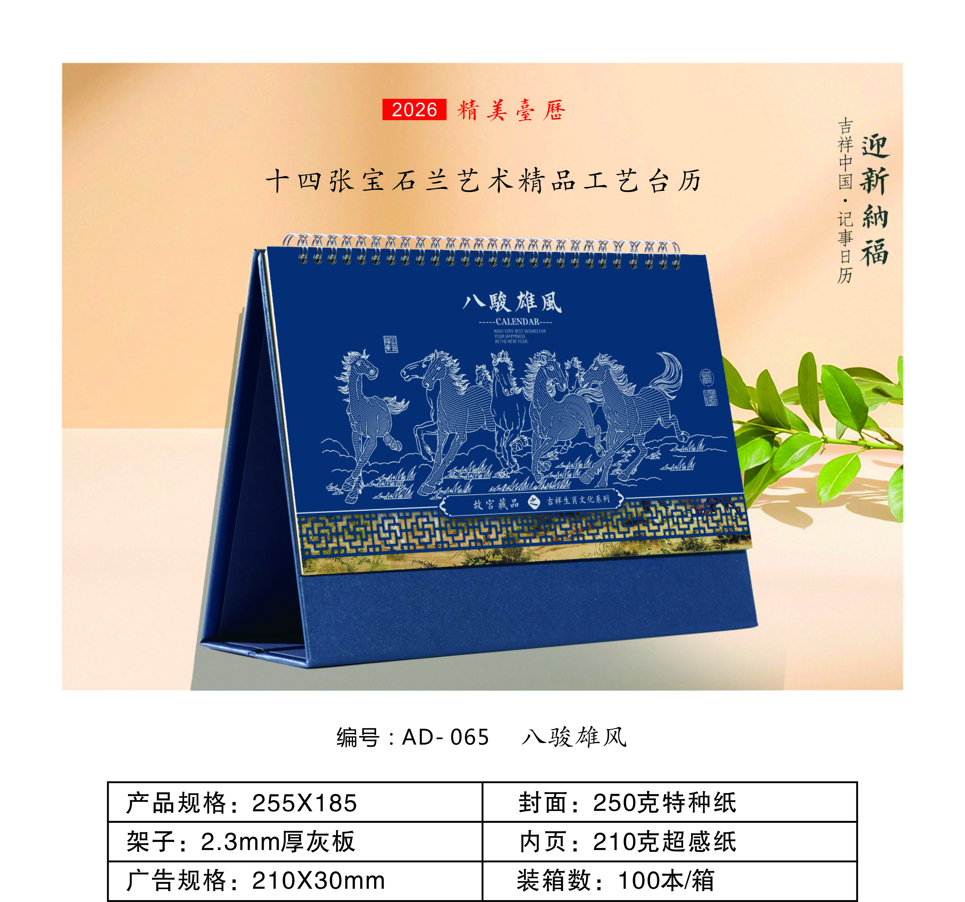 十四張寶石蘭藝術精品工藝臺歷-八駿雄風
