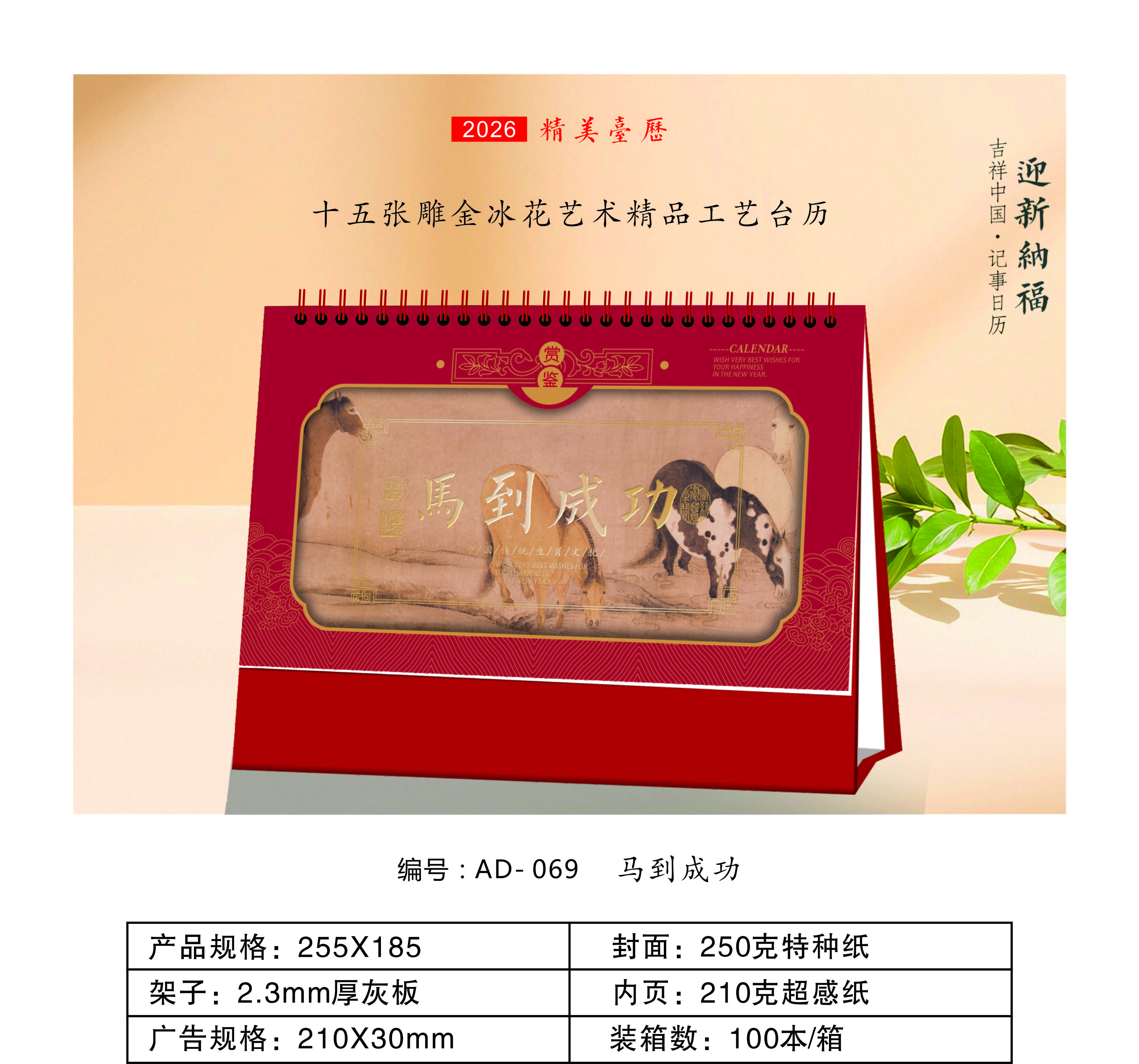 十五張雕金冰花藝術(shù)精品臺歷-馬到成功