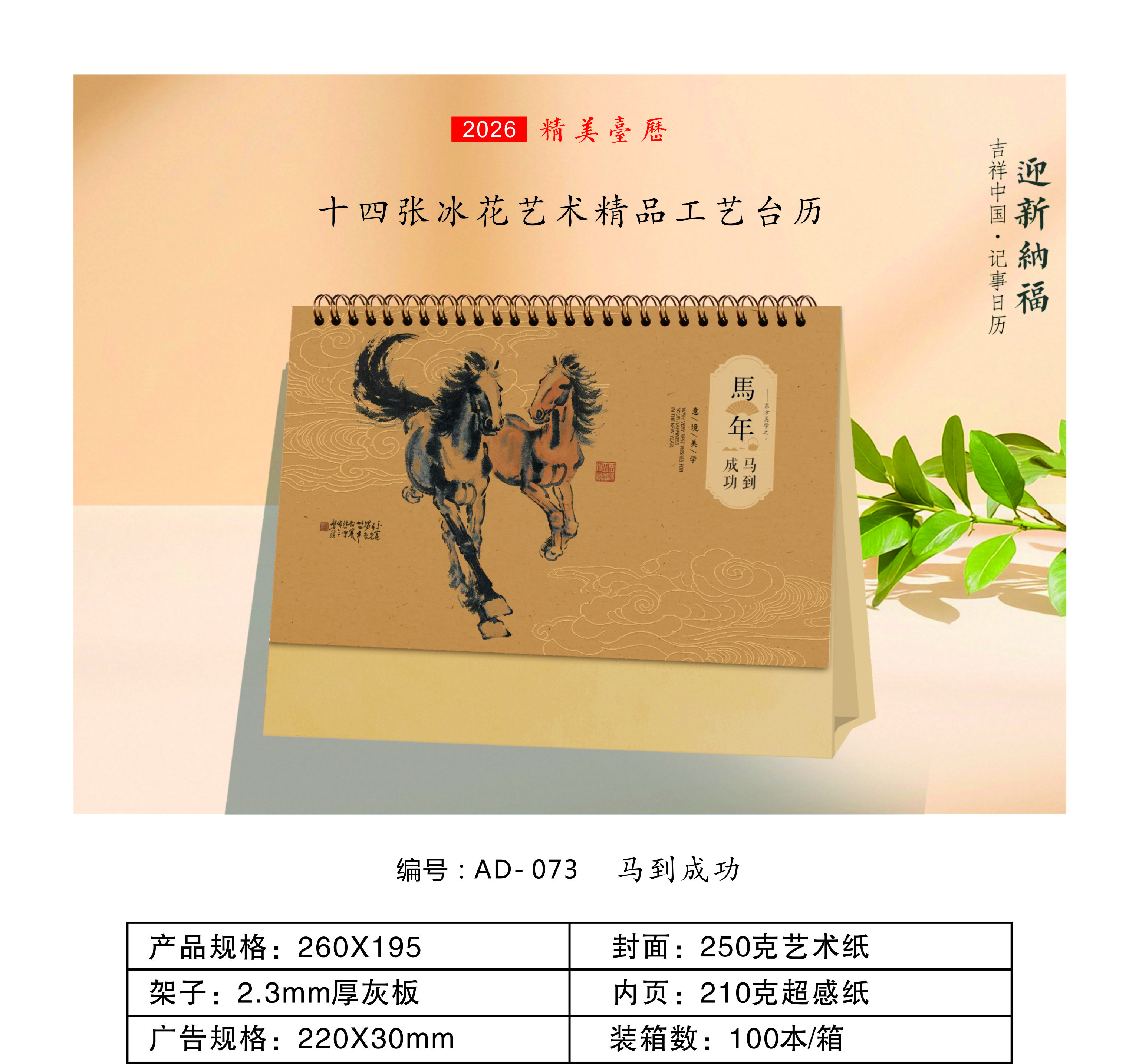 十四張冰花藝術(shù)文化精品工藝臺(tái)歷-馬到成功