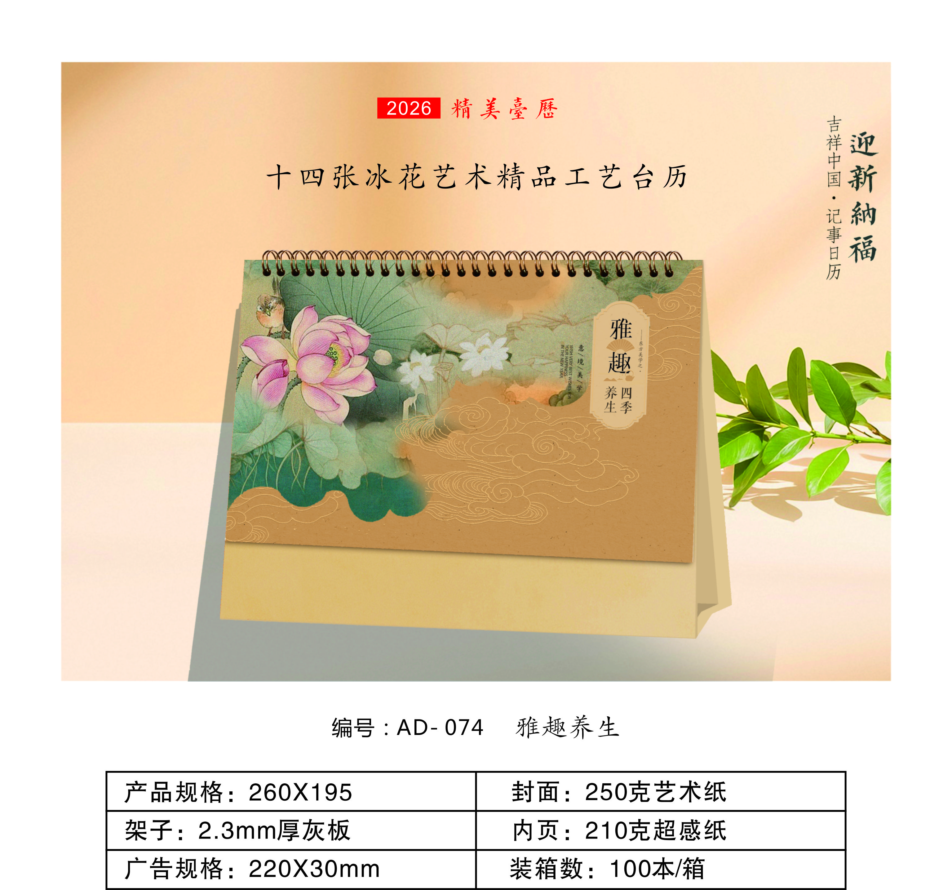 十四張冰花藝術(shù)文化精品工藝臺(tái)歷-雅趣養(yǎng)生