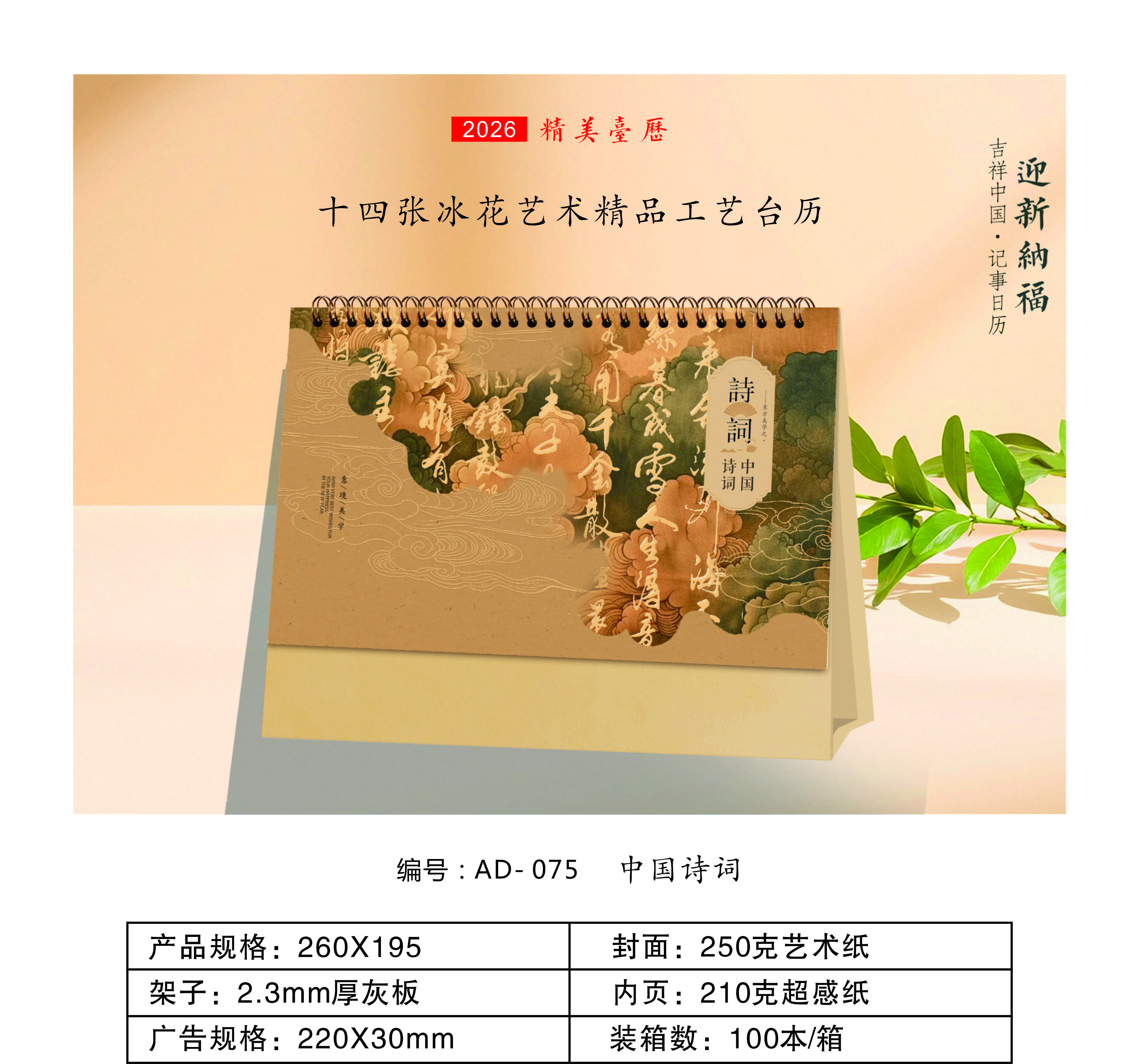 十四張冰花藝術(shù)文化精品工藝臺(tái)歷-中國(guó)詩(shī)詞