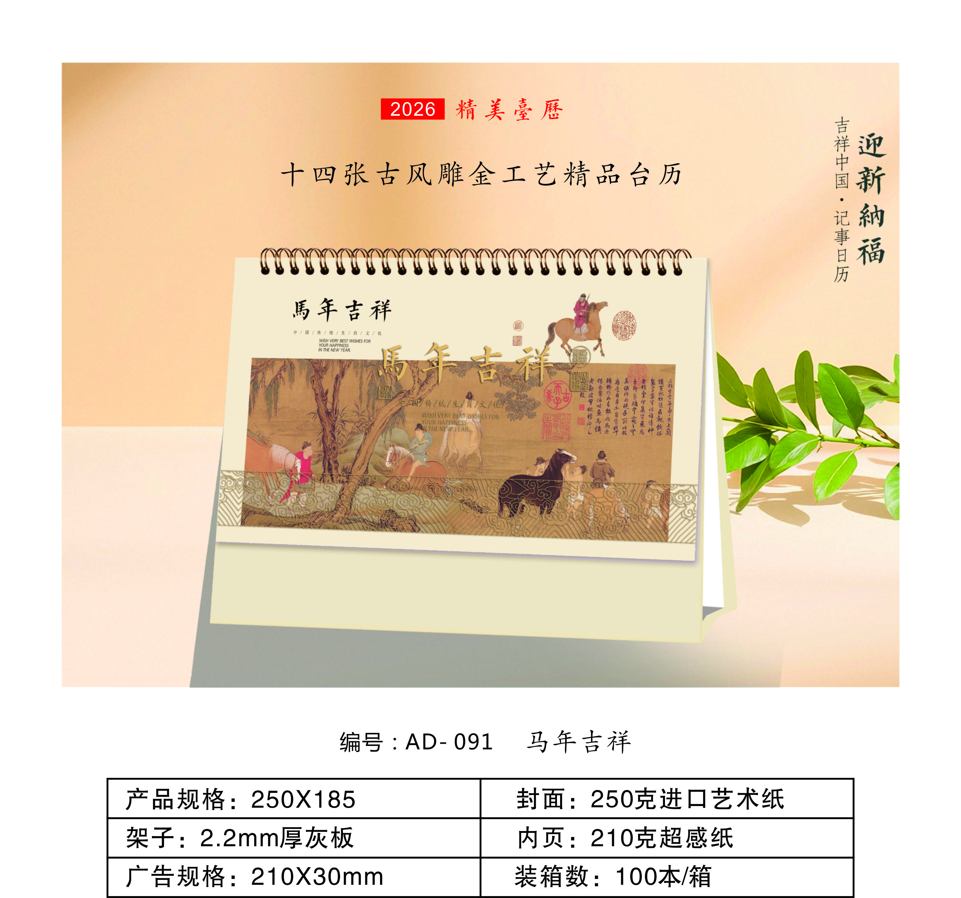 十四張古風(fēng)雕金布藝臺歷-馬年吉祥