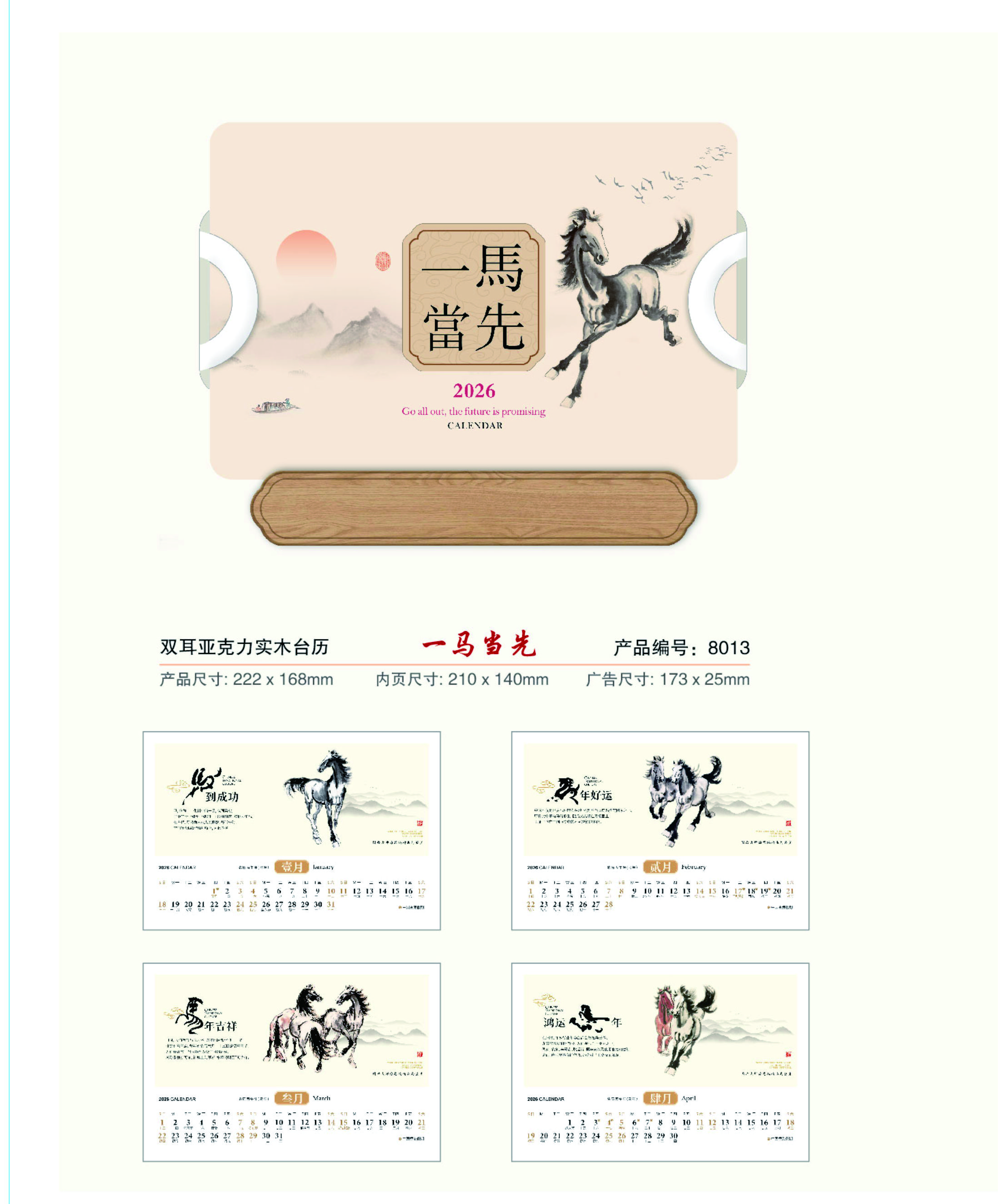 雙耳亞克力實木臺歷-一馬當(dāng)先