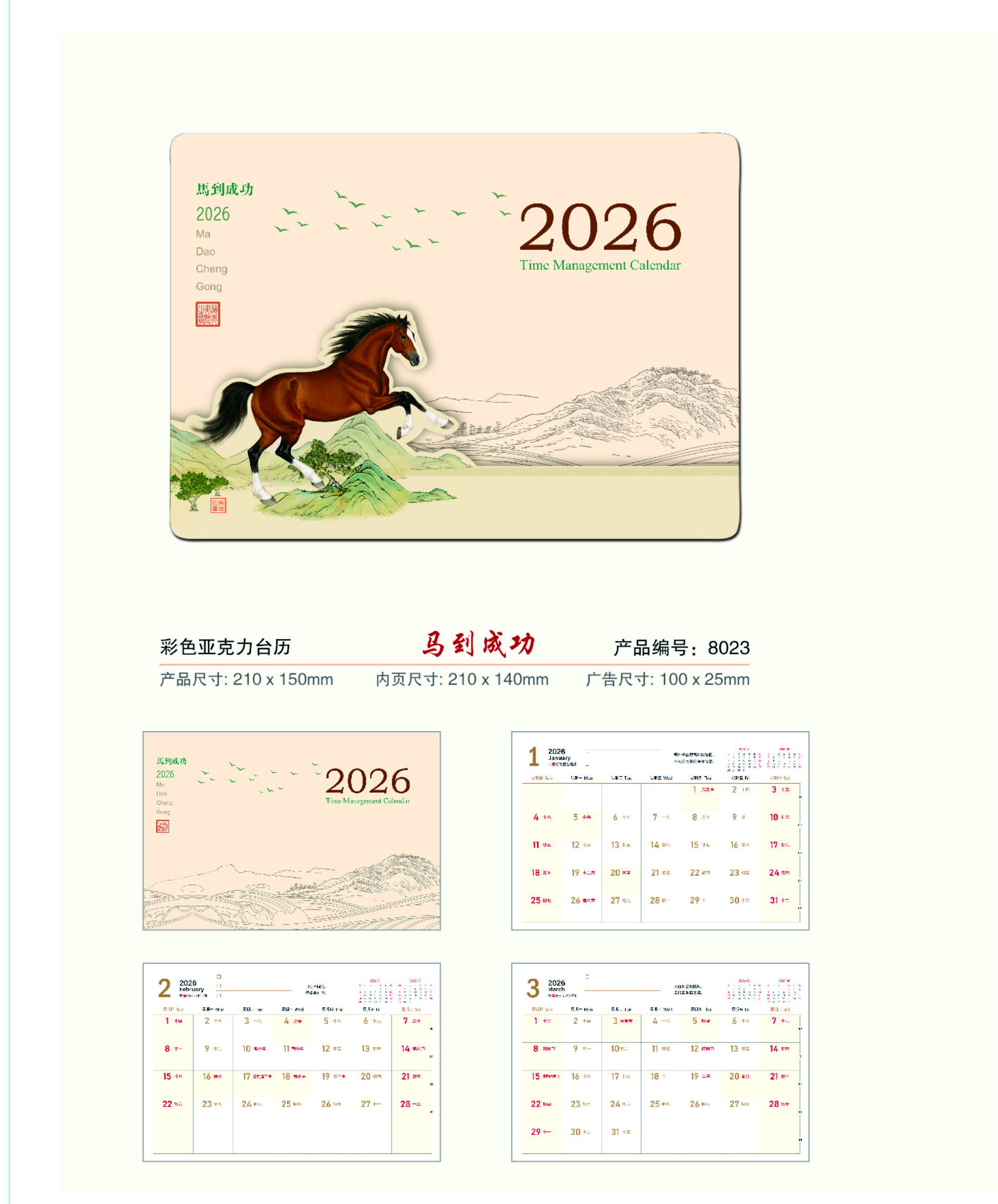 彩色亞克力臺歷-馬到成功
