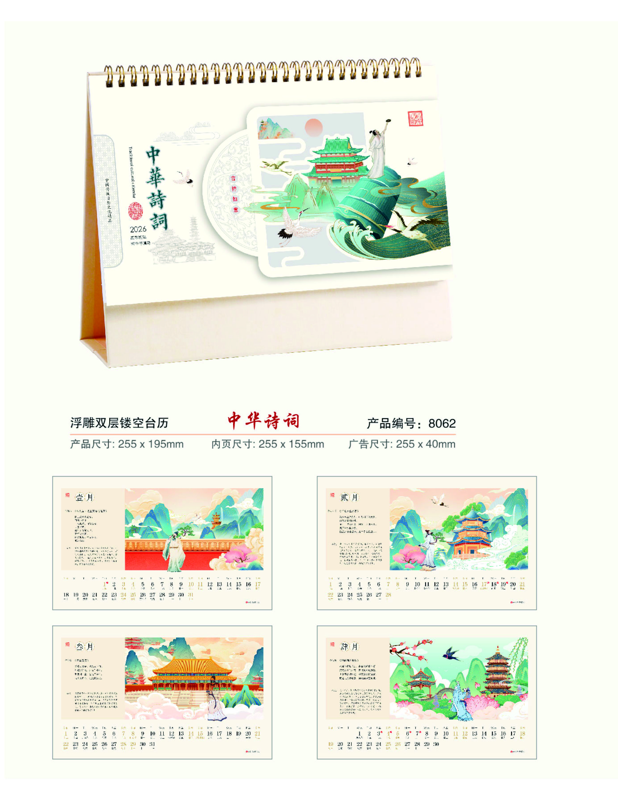 浮雕雙層鏤空臺歷-中華詩詞