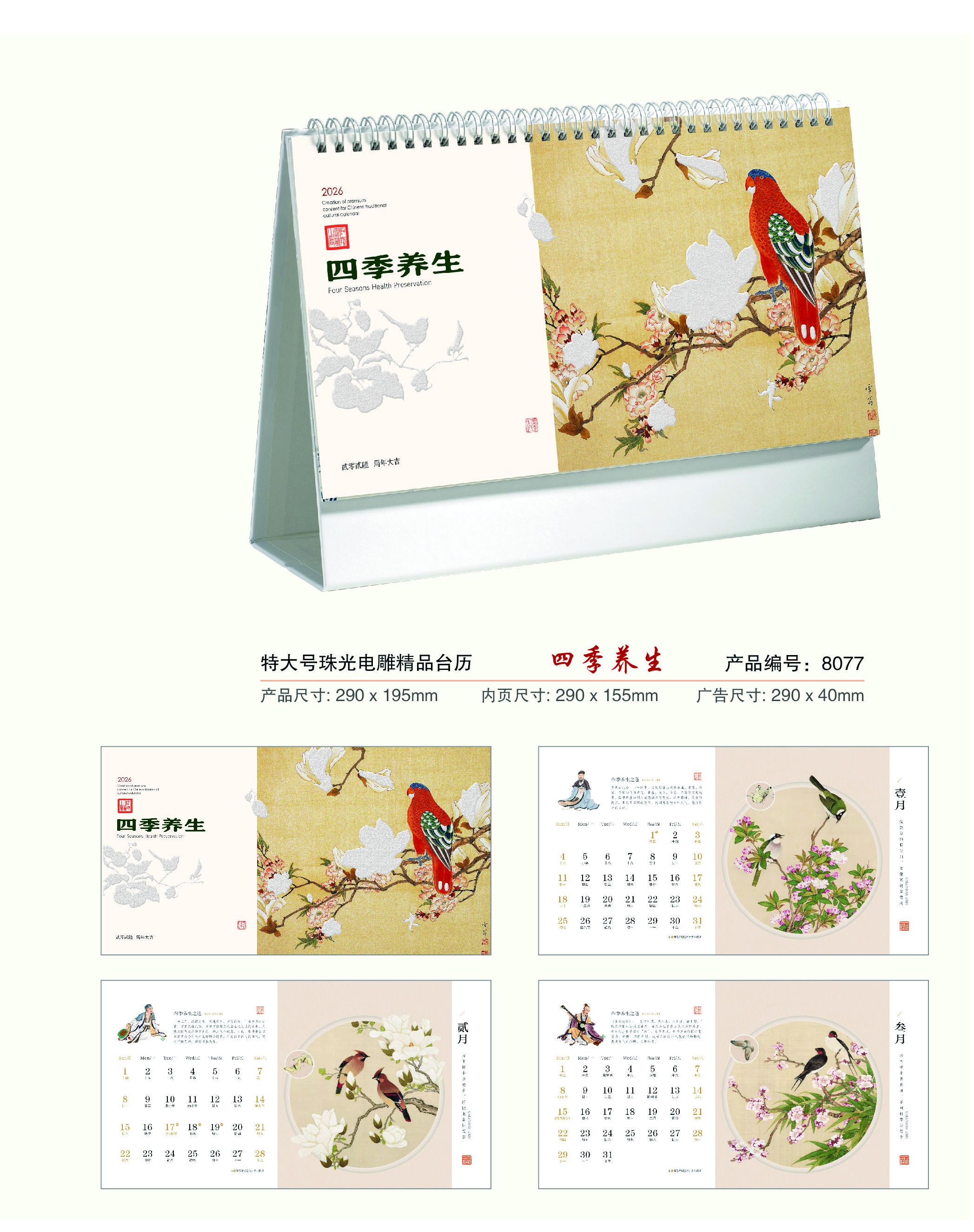 特大號(hào)珠光電雕精品臺(tái)歷-四季養(yǎng)生
