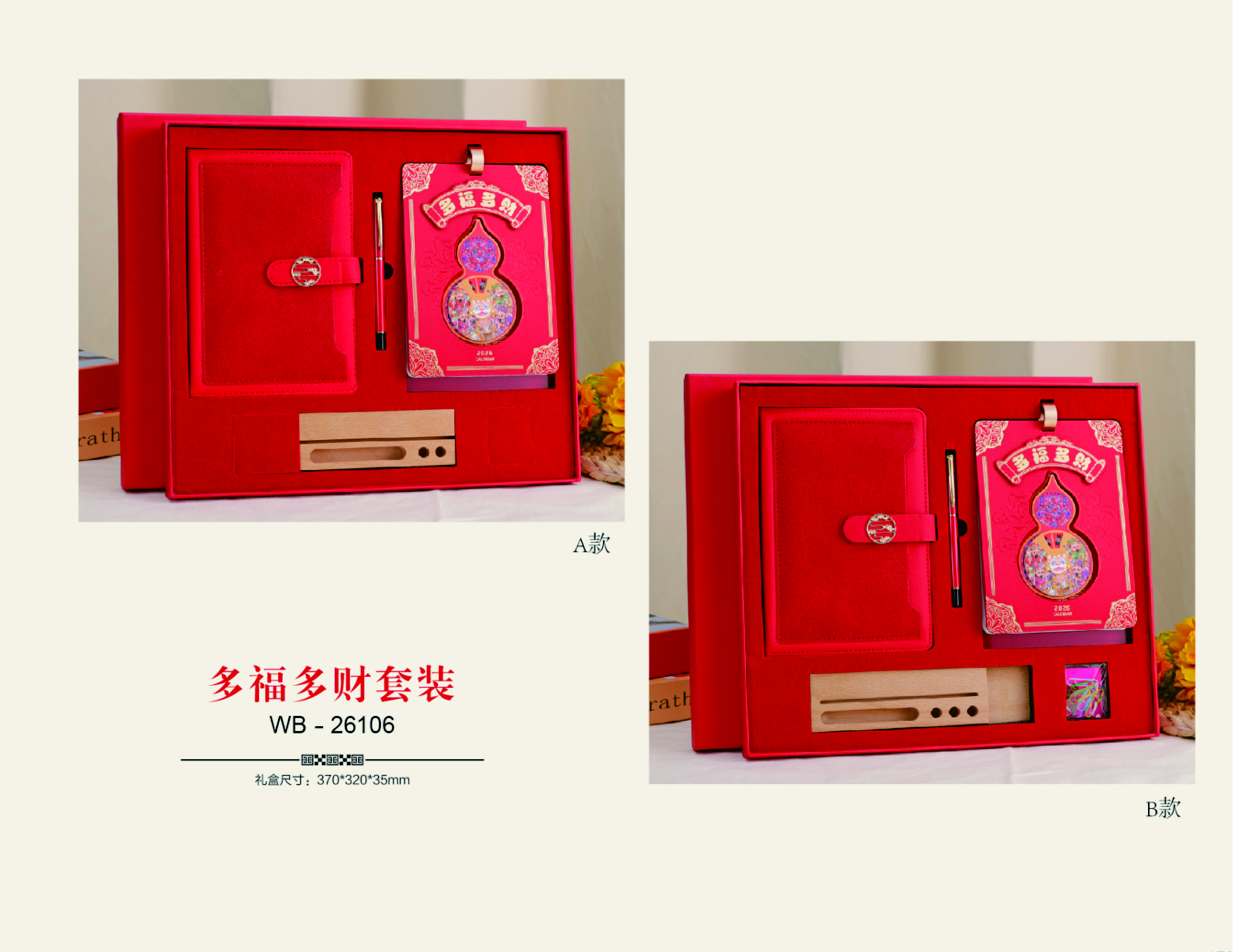 十三張多功能特種精雕木座臺(tái)歷-B款-多福多財(cái)套裝