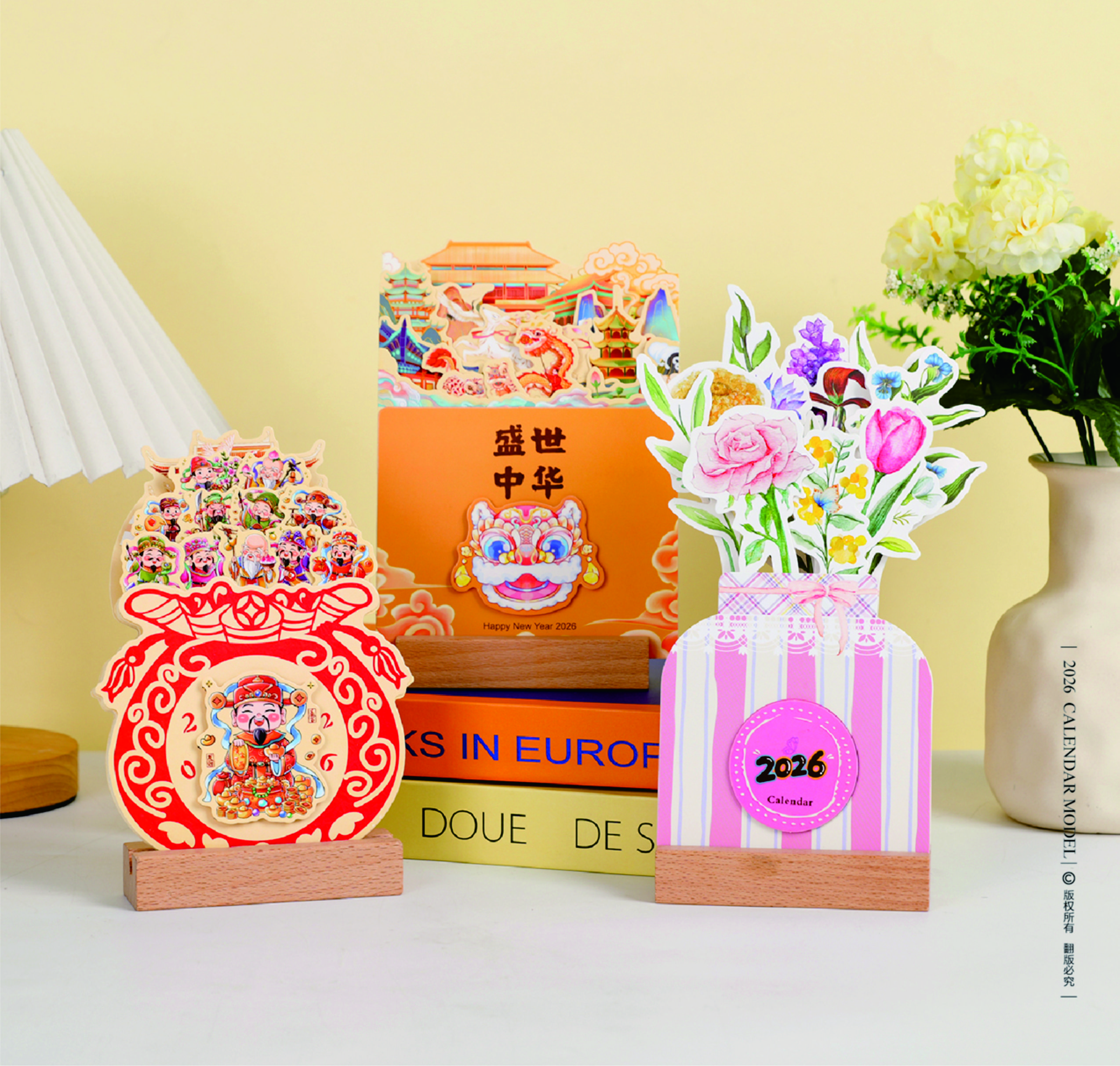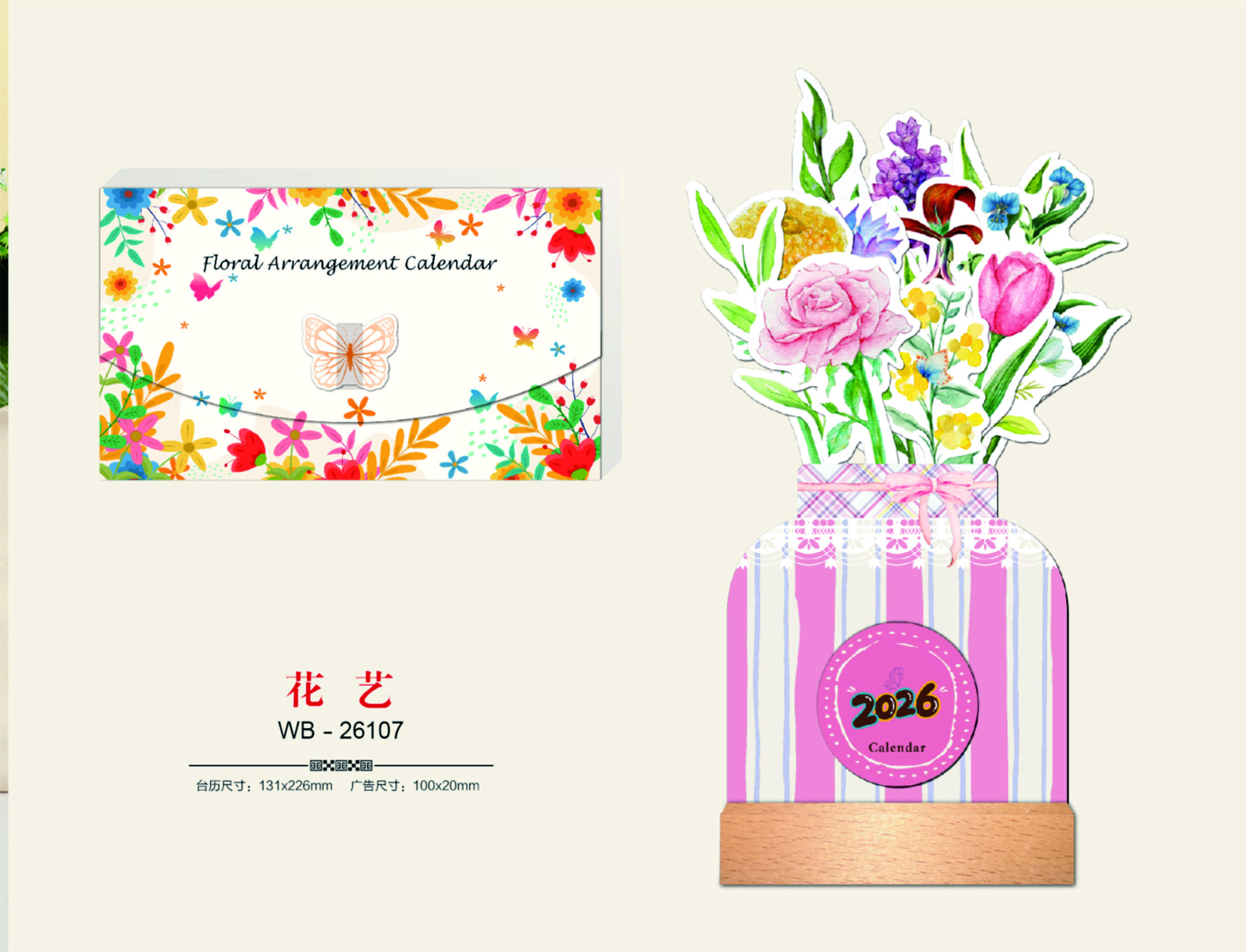 十三張時(shí)尚創(chuàng)意木座臺(tái)歷-花藝