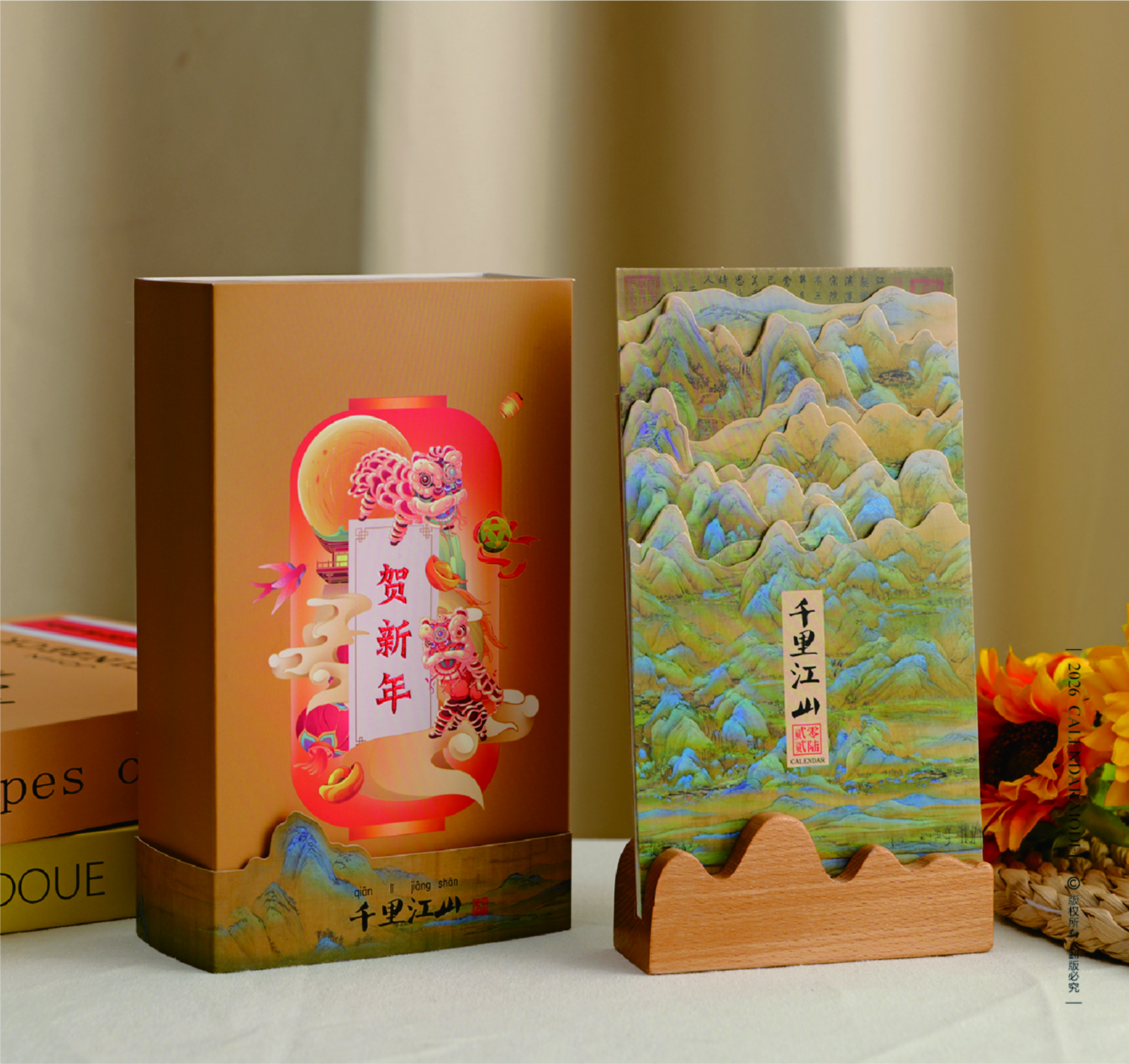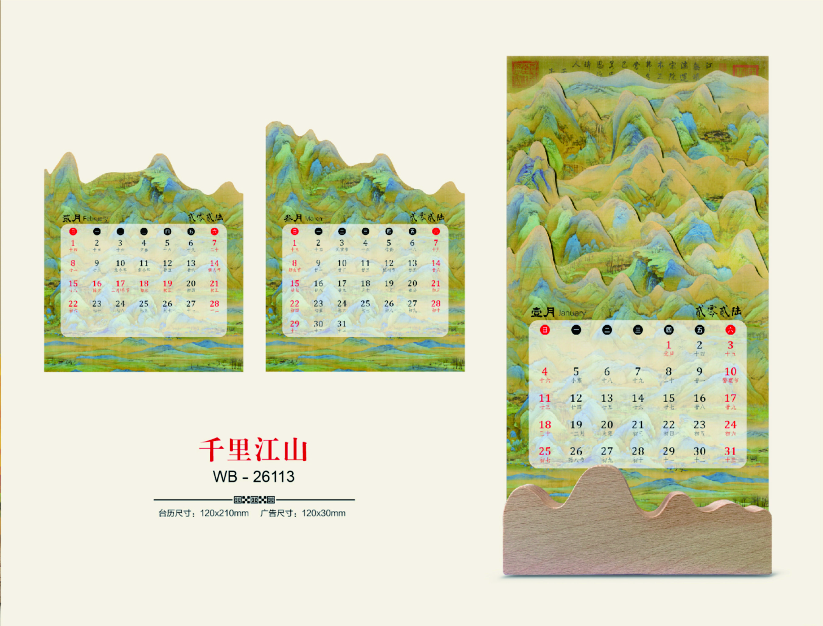 十三張國(guó)畫(huà)風(fēng)情木座臺(tái)歷-千里江山