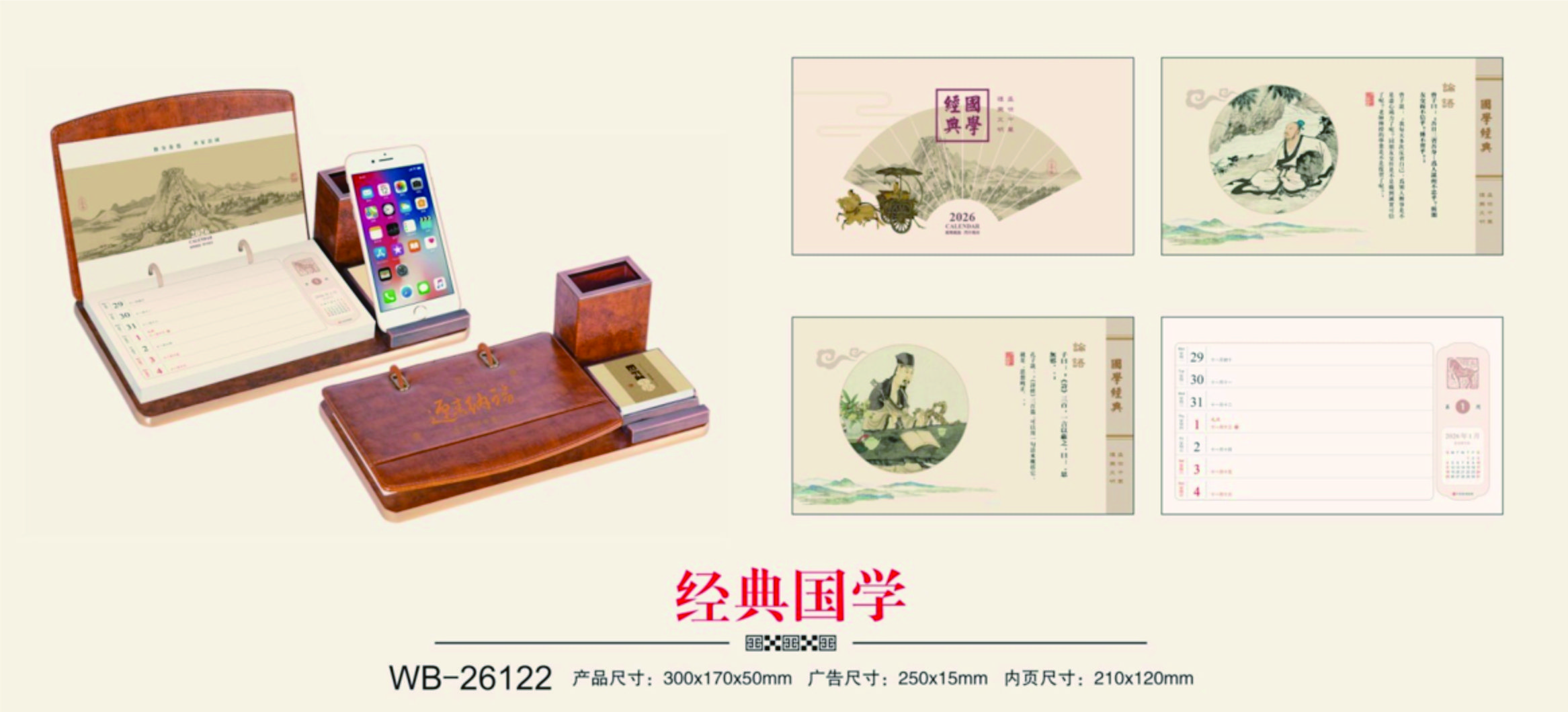時尚皮質筆筒臺歷-經典國學