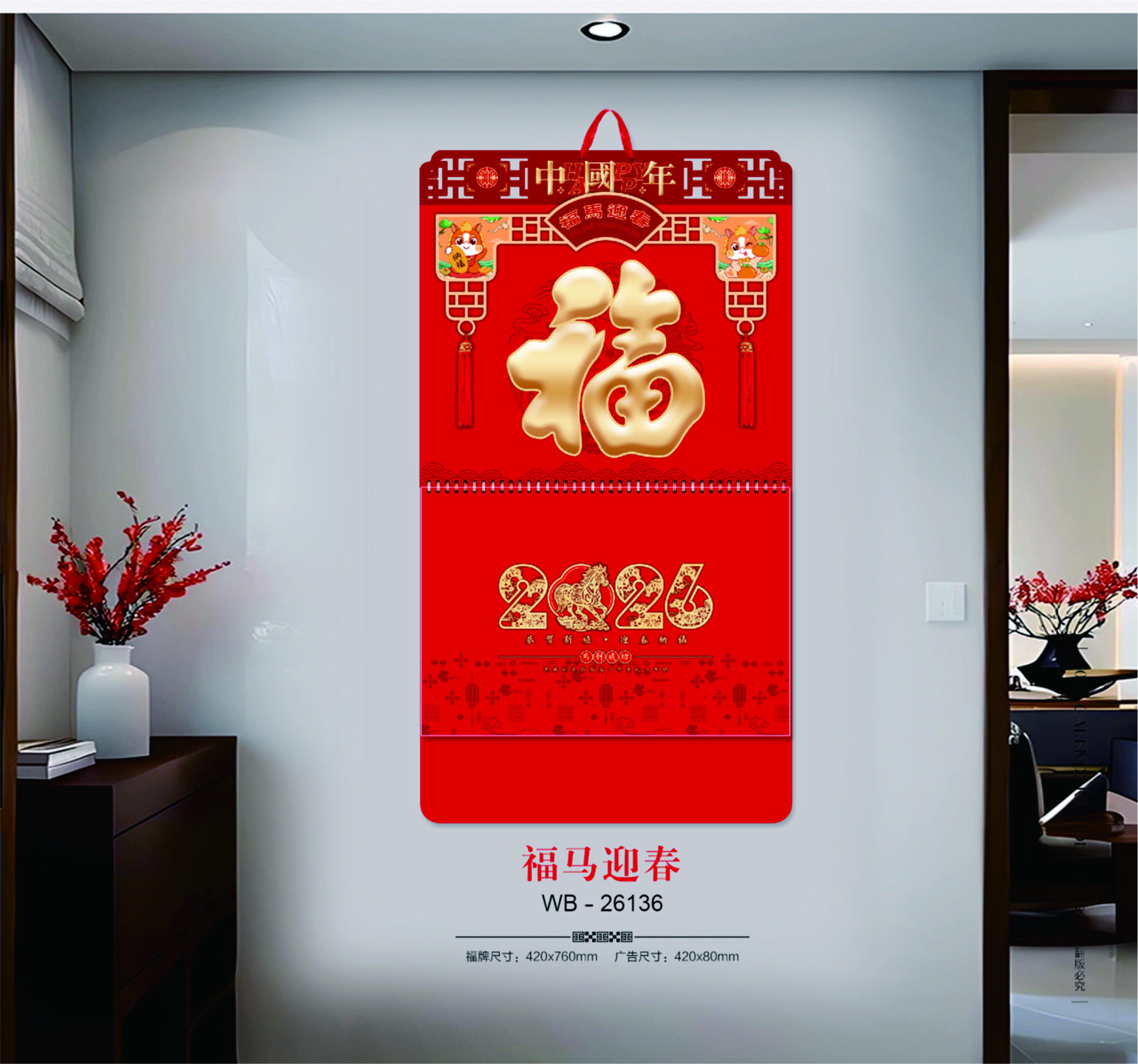 大六開觸感精雕福牌(加封面)-福馬迎春