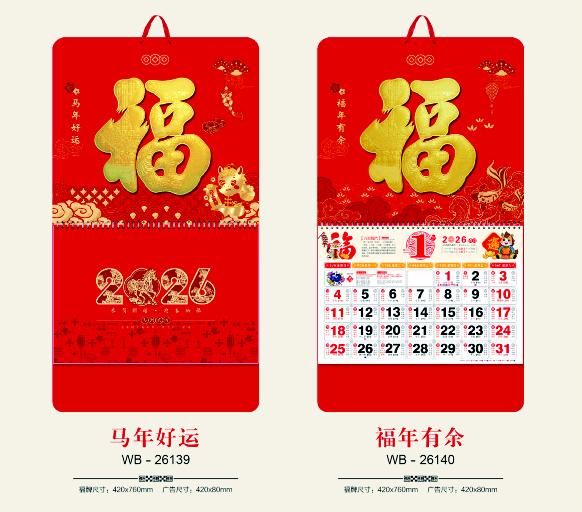 大度六開中國紅浮雕福牌(加封面)-馬年好運-福年有余