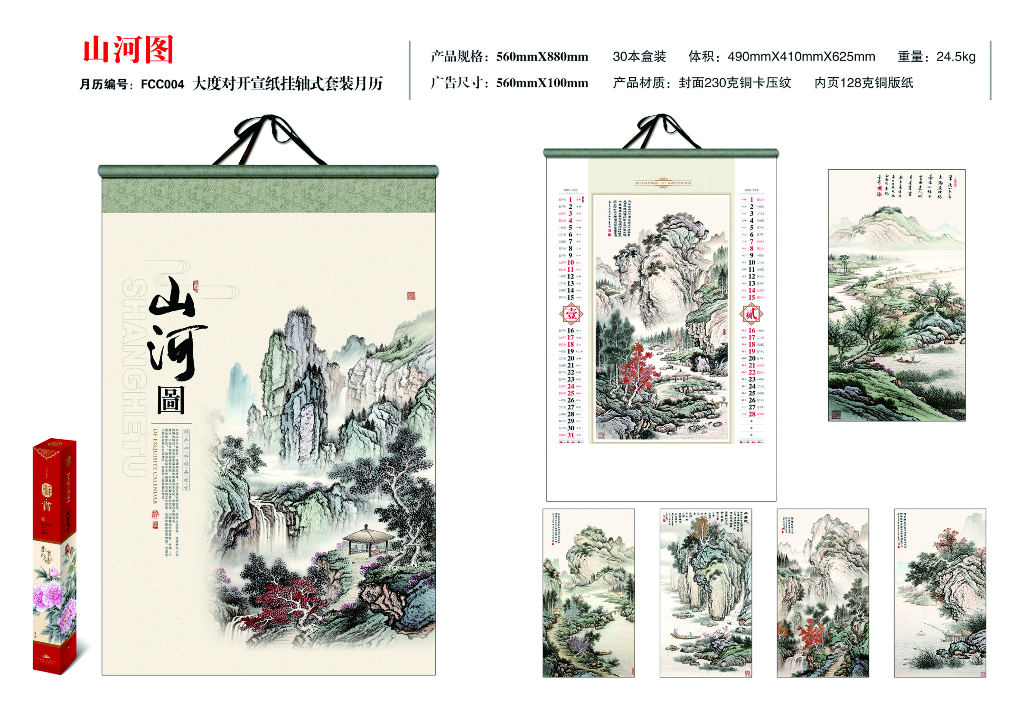 大度對開宣紙掛軸式套裝月歷-山河圖